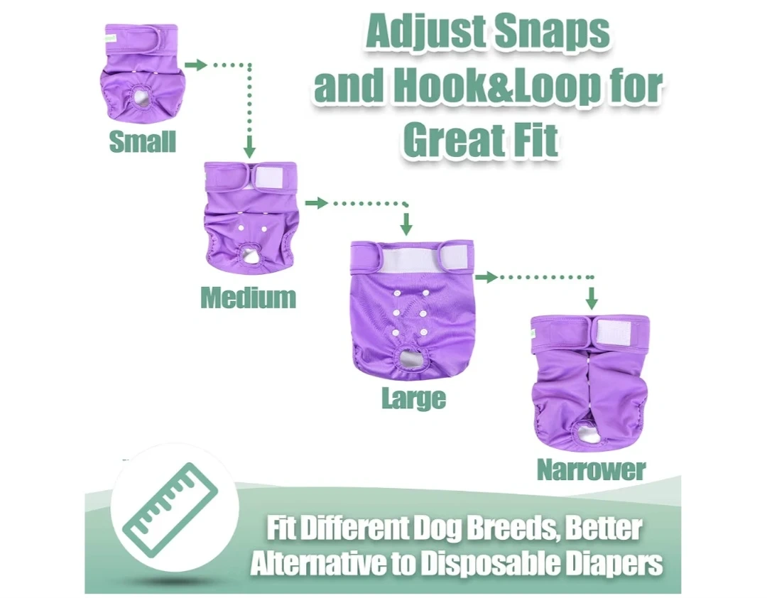 This reusable dog diaper is made with a leak-free exterior and a super absorbent pad inside. It features adjustable snaps and hook & loop for a great fit and a tail hole that provides a better fit. The athletic wicking jersey lining wicks moisture away.