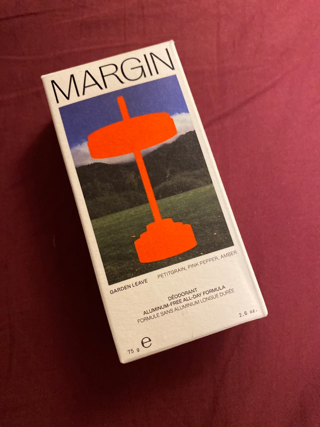 ⭐️This is the MARGIN aluminum-free all-day formula deodorant in the Garden Leave scent. It's 75g and formulated without aluminum or baking soda. Made in Canada.