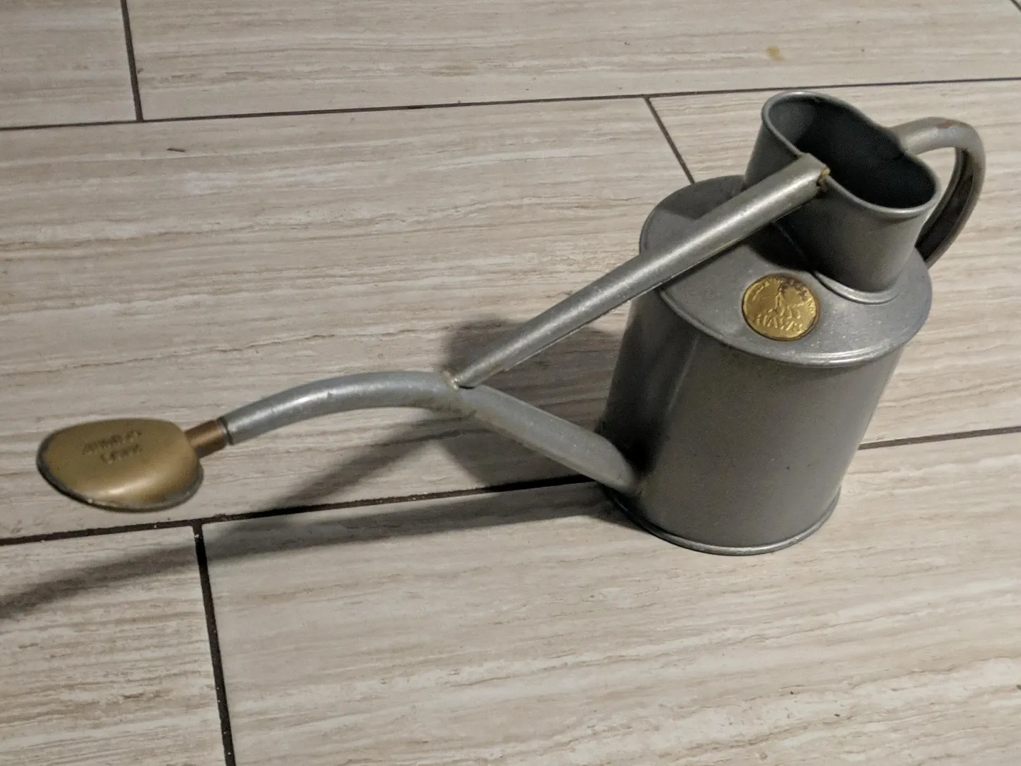 Selling a Haws watering can in silver. It's in good condition and ready to help with your gardening needs!