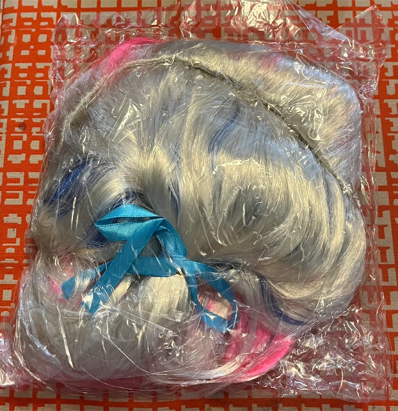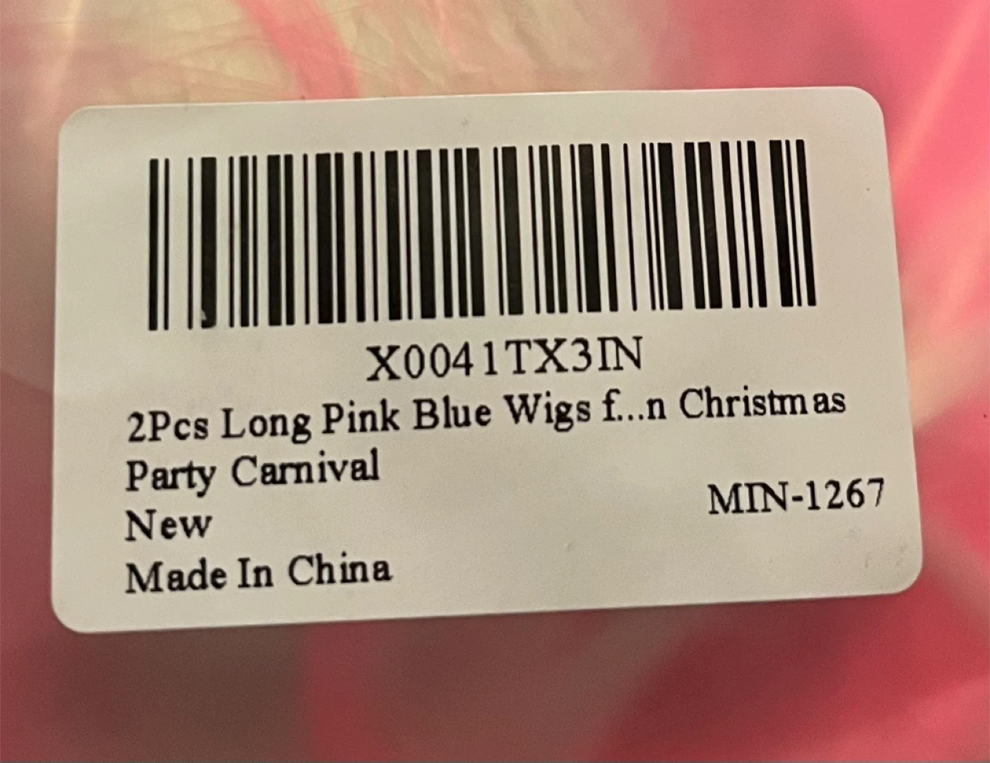 Two long wigs in pink, blue, and silver. They're suitable for parties and carnivals. Includes a weaving cap with elastic for a secure fit. One size fits most hair styles.