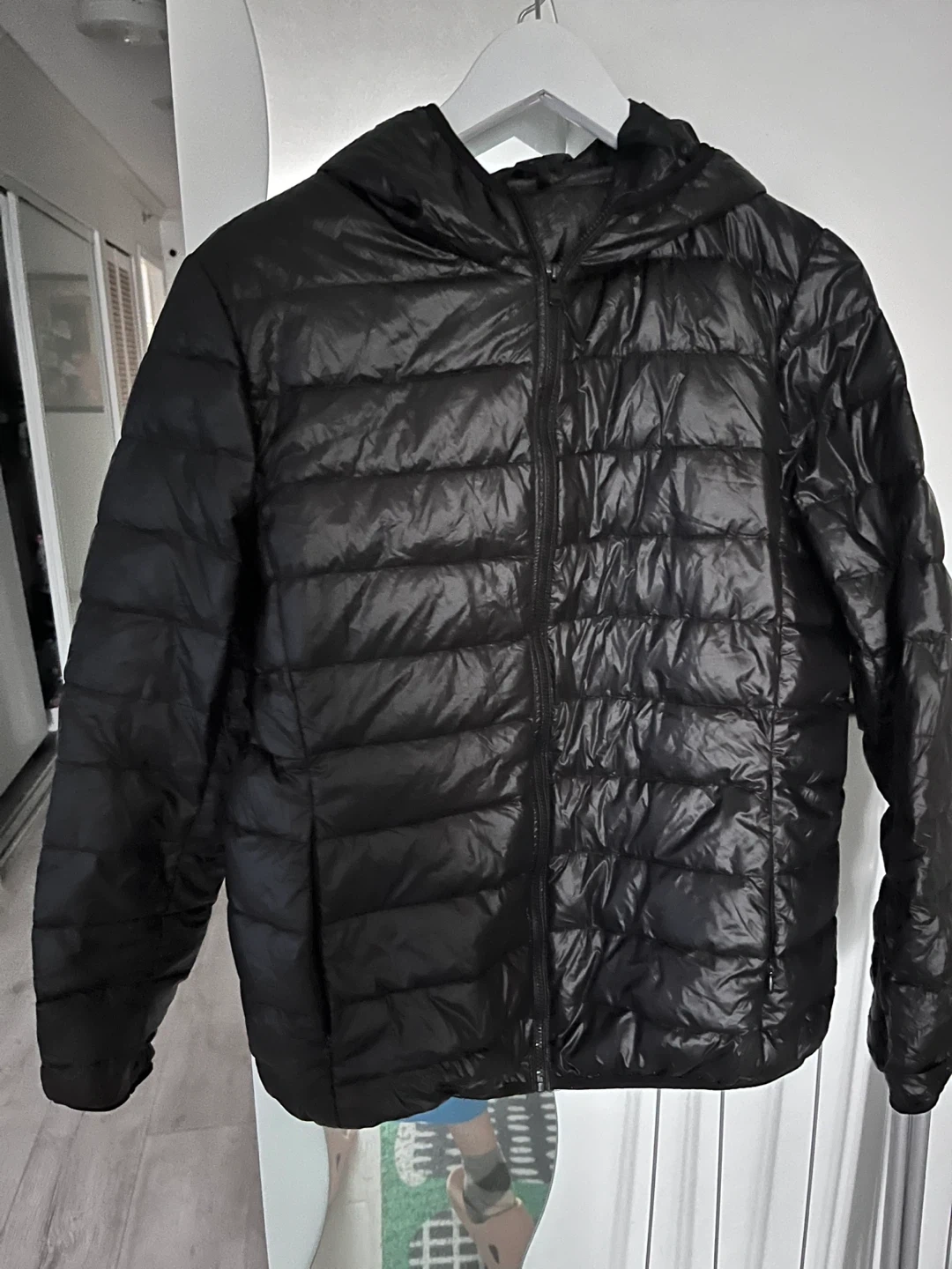 Women’s Black and Red. Uniqlo Ultra Light Down jacket in black and berry red. It's a packable puffer coat that comes with its own stuff sack. Lightweight and warm for cooler weather!
