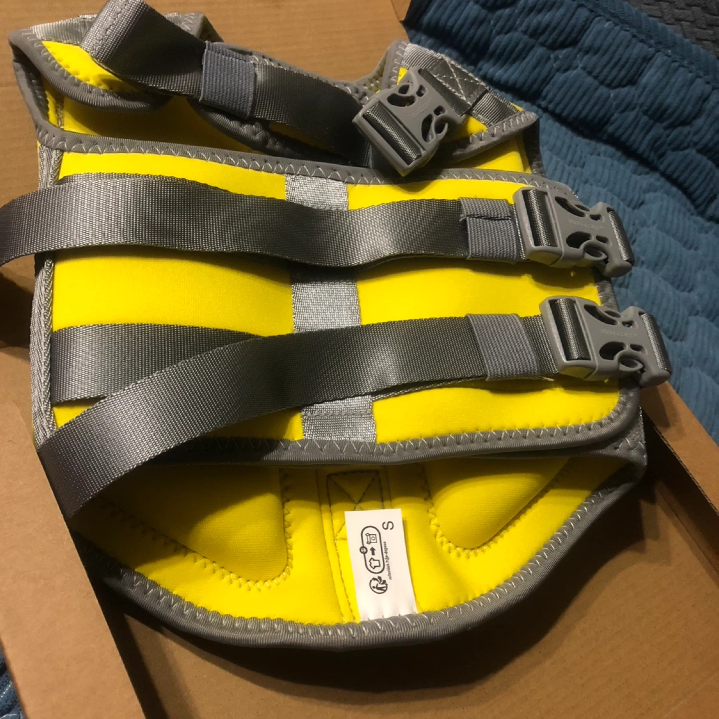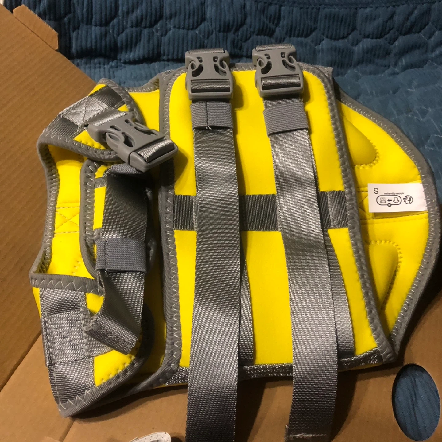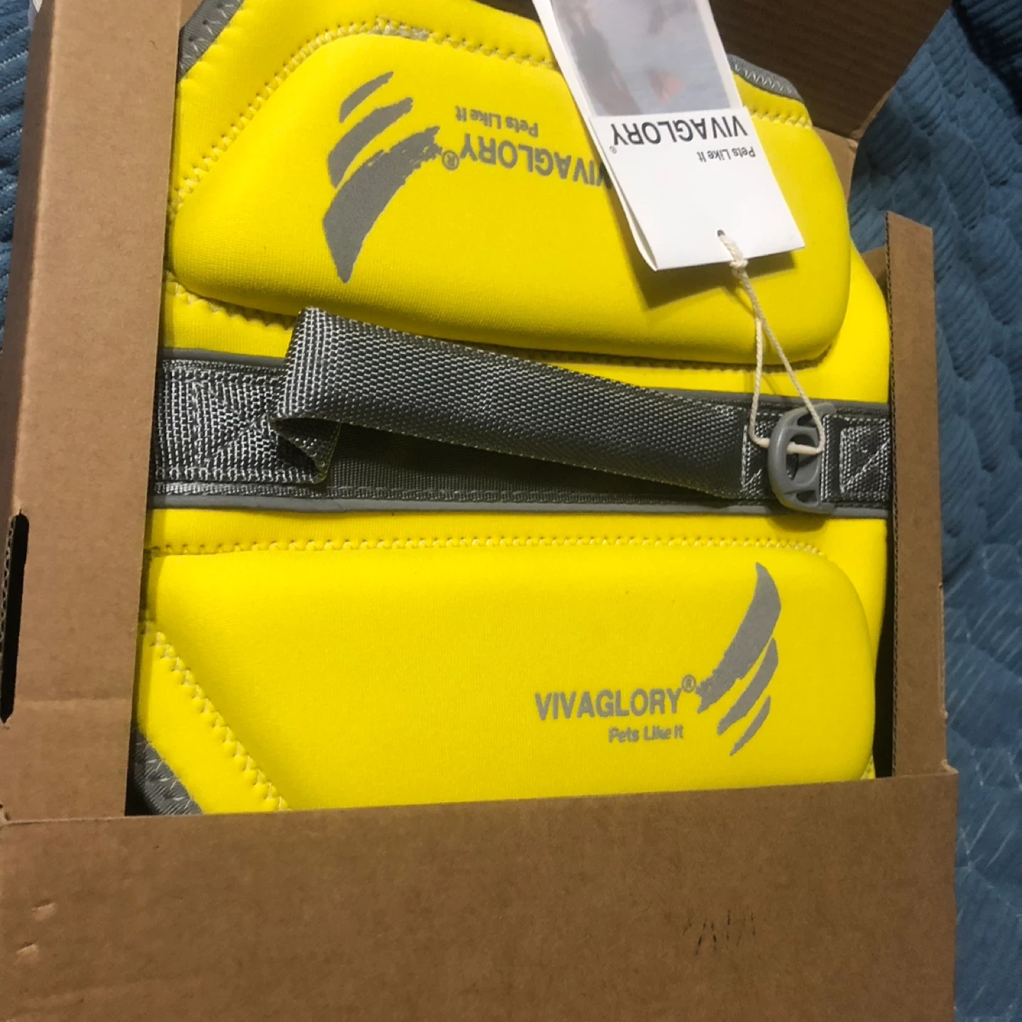 Selling a new VIVAGLORY pet life jacket vest in bright yellow. Features adjustable straps and buckles for a secure fit. Size is small.