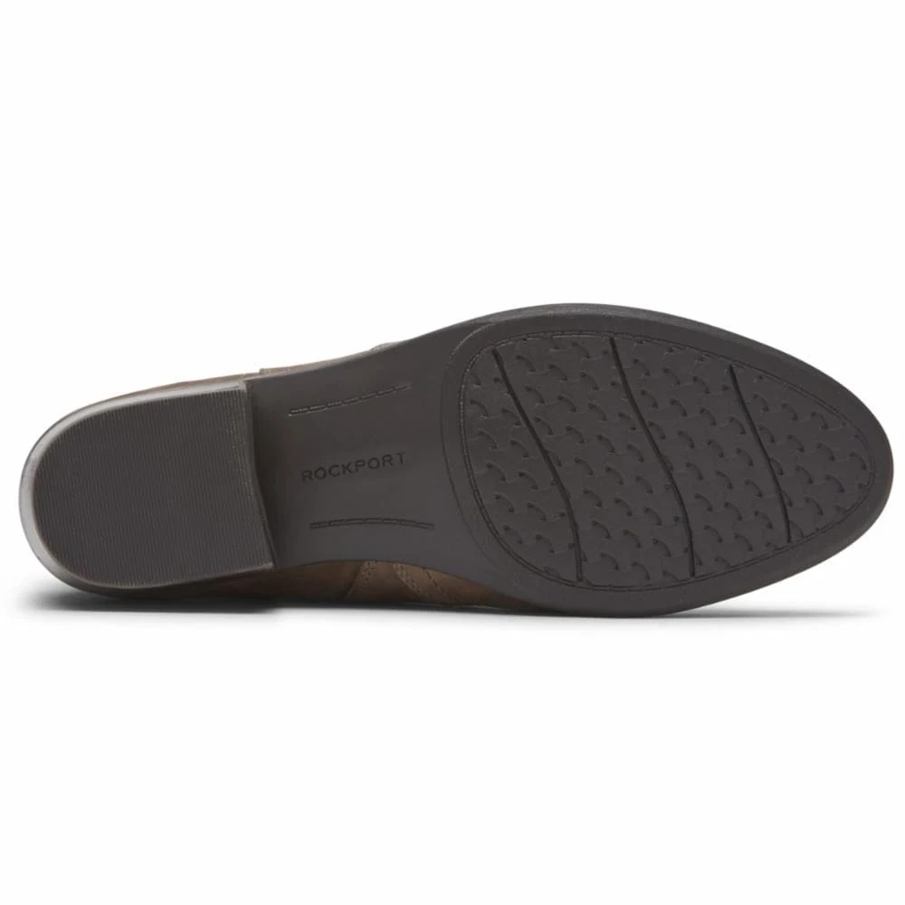 These Rockport ankle boots are crafted from brown leather. They feature stylish strap detailing and a side zipper for easy wear. The durable sole provides good traction.