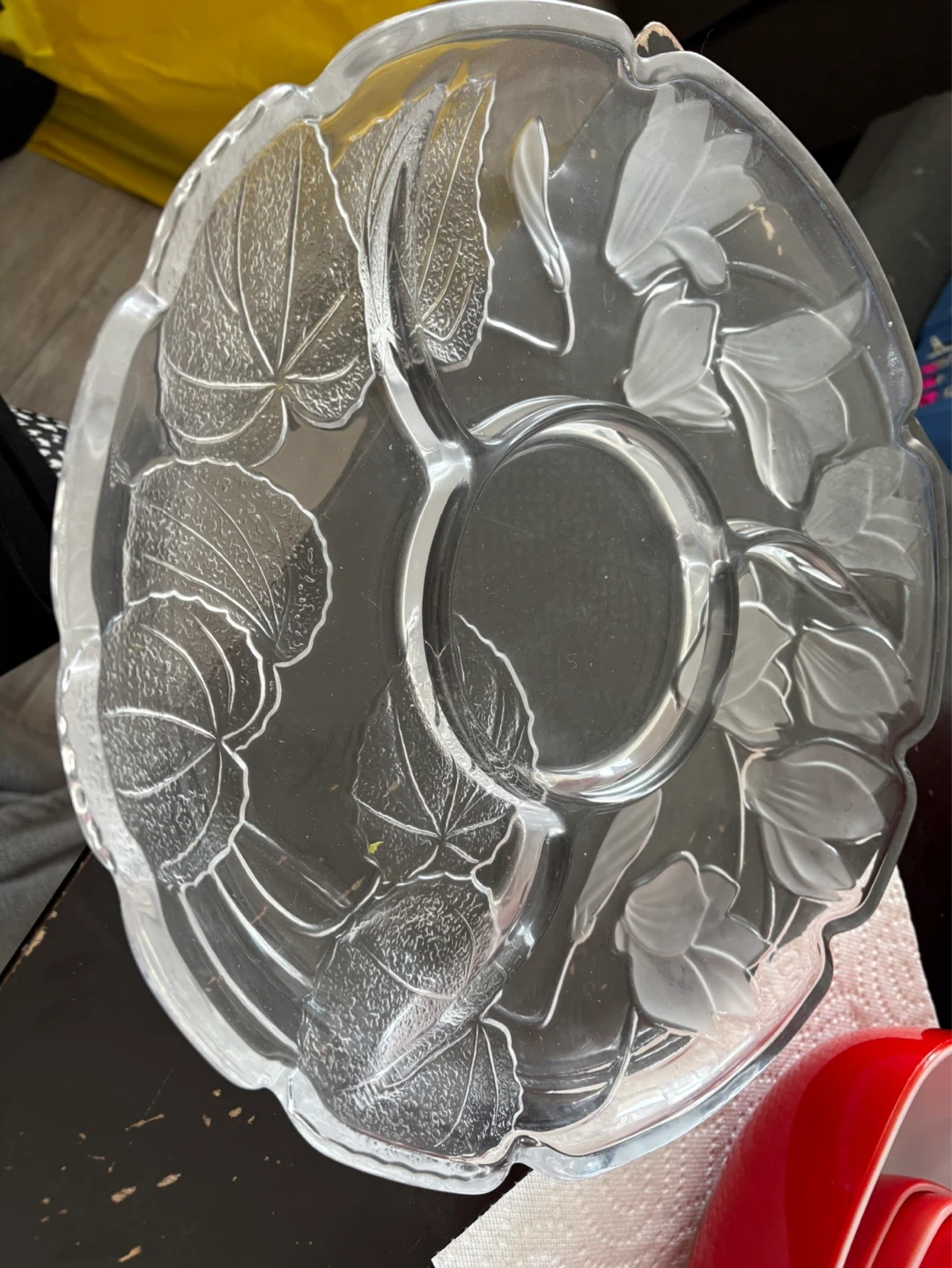 Clear Glass Serving Platter with Embossed Leaf Design