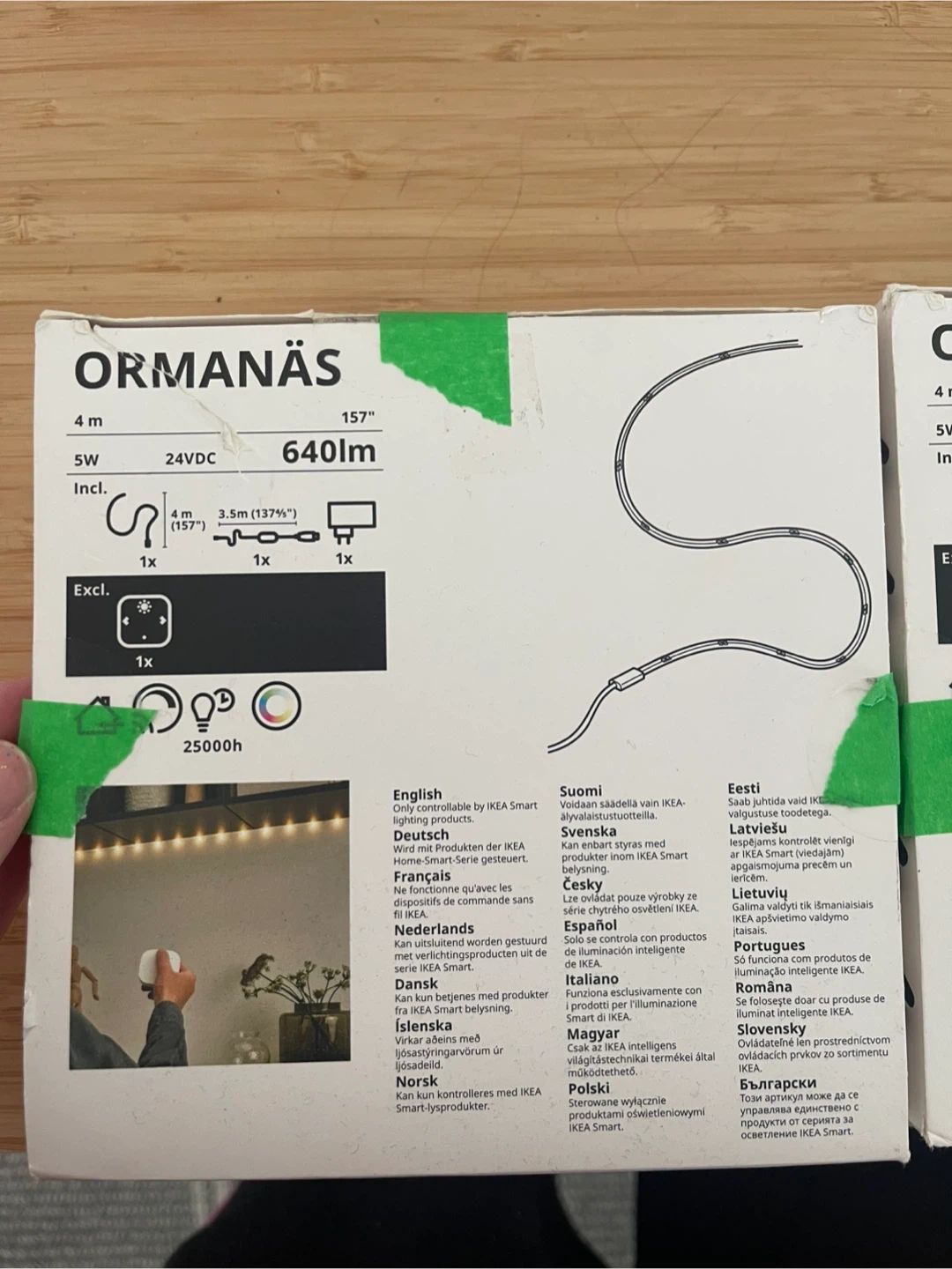 Selling IKEA ORMANÄS LED string lights. Each string is 4 meters long and provides 640lm of light. They work with IKEA Home smart. The box is included