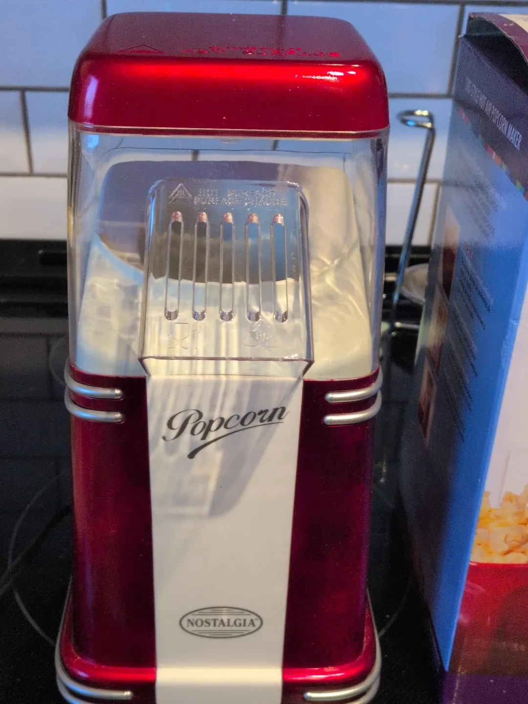 This Nostalgia popcorn maker. perfect for making movie theatre-style popcorn at home. The unit features a clear popping chamber for viewing the popcorn.