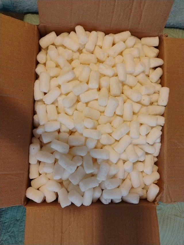 These packing peanuts are ideal for cushioning and protecting your items during shipping or storage. This box offers a substantial amount of packing material. The box measures approximately 14 inches by 10 inches. These are used peanuts from a mixed pack. Approximately 2-3 cubic feet. Cash accepted.