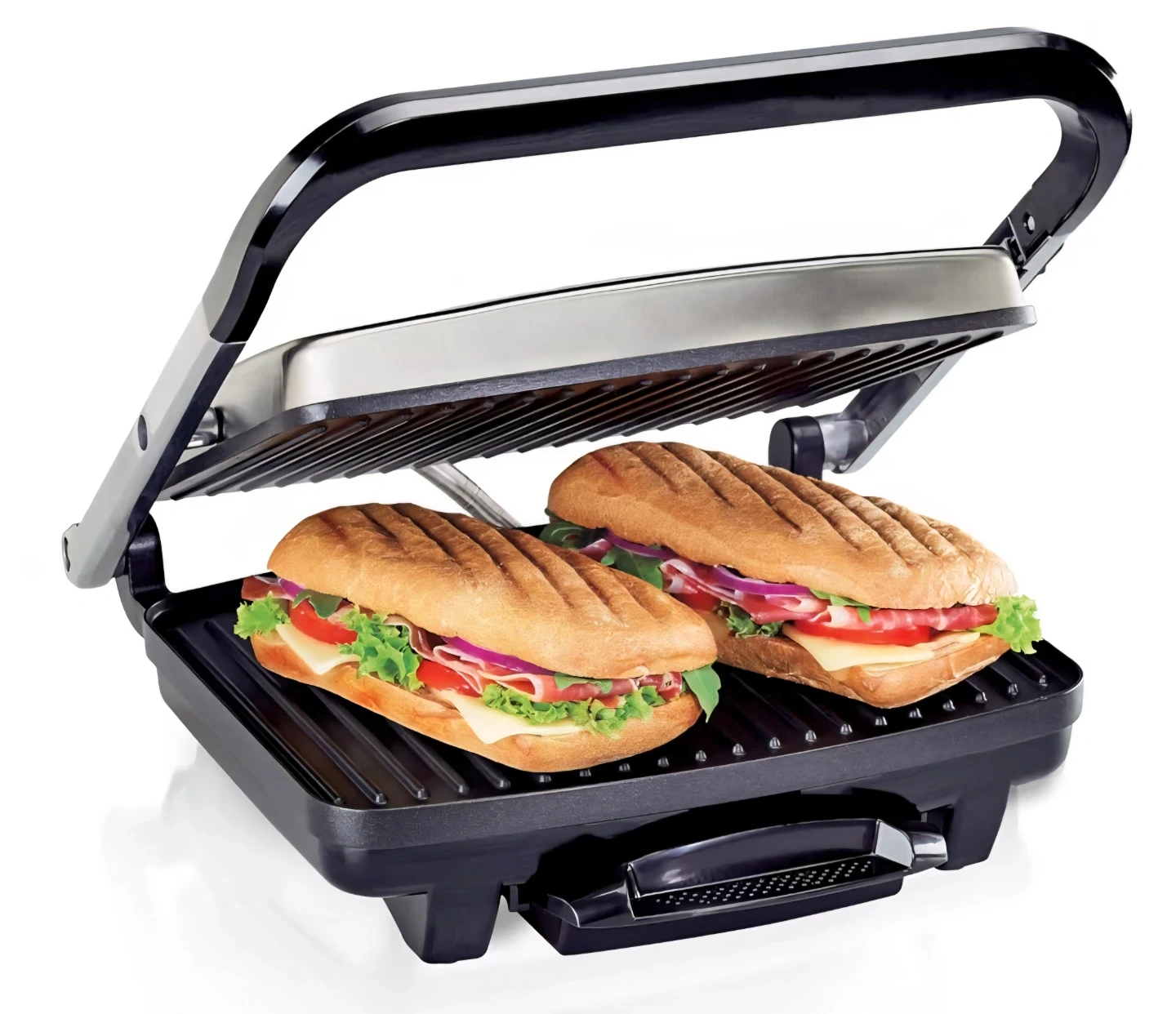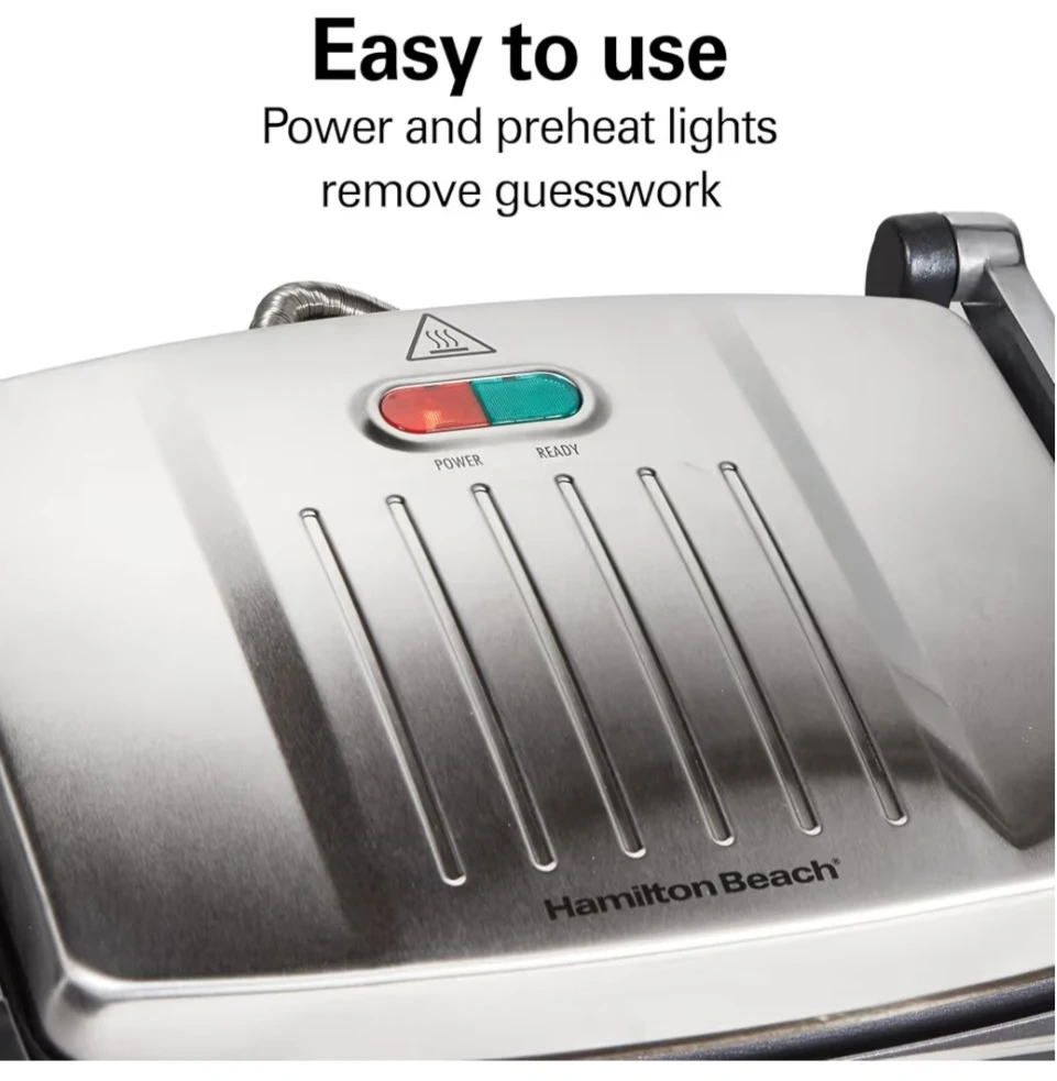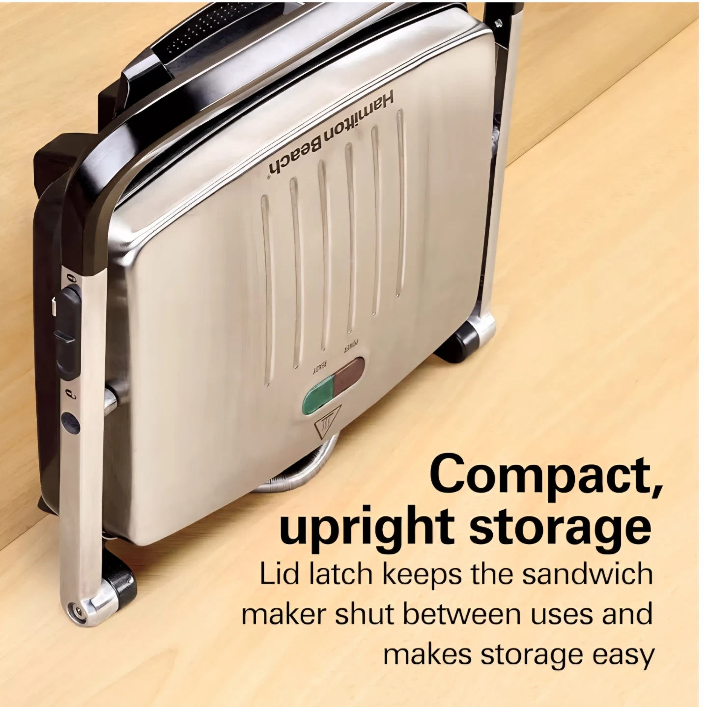 Hamilton Beach Panini Press, Sandwich Maker & Electric Indoor Grill, Upright Storage, Nonstick Easy Clean Grids, Stainless Steel