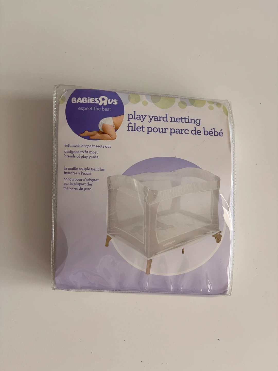 This Babies R Us play yard netting keeps insects out. It's designed to fit most brands of play yards. Soft mesh construction.
