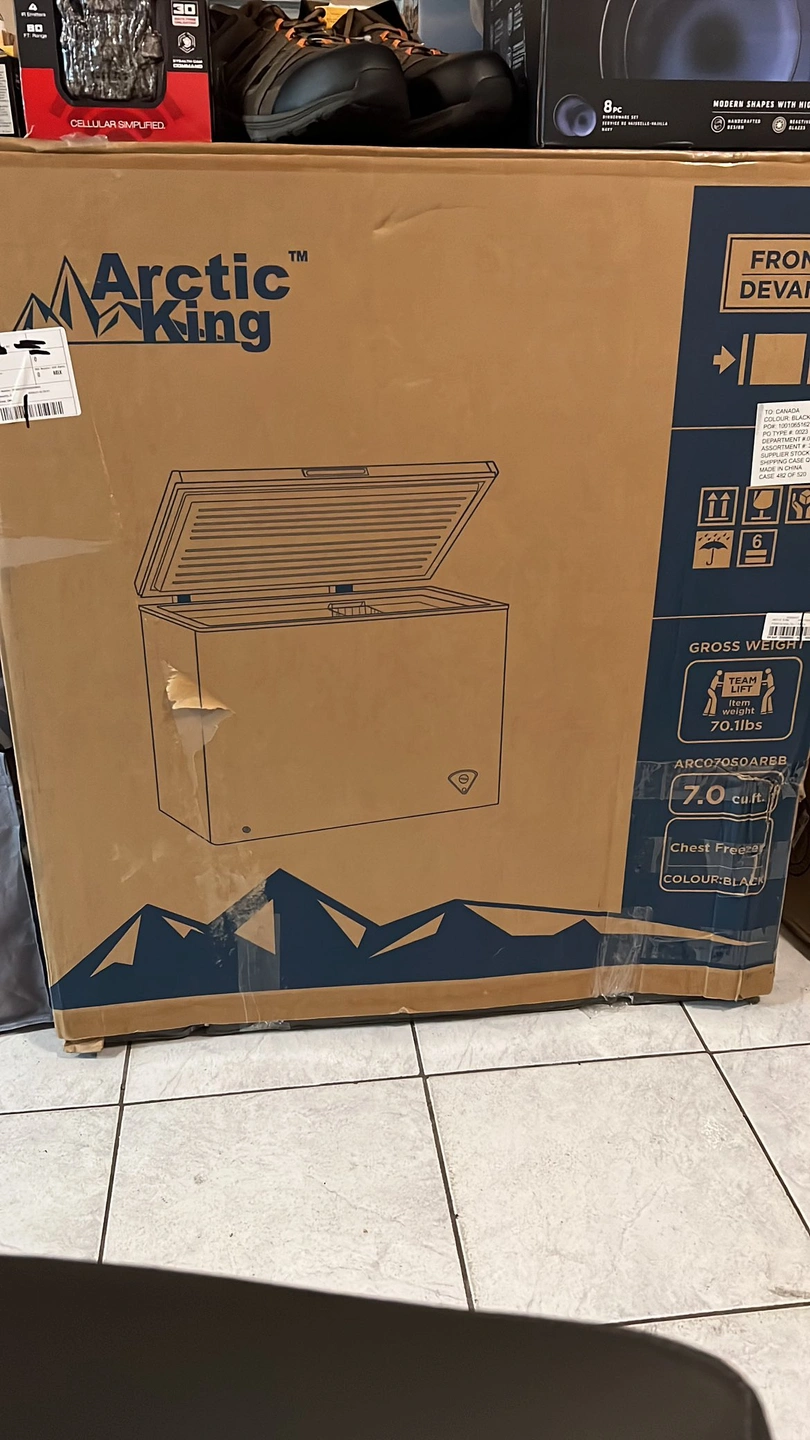 Selling New Open box Arctic King 7.0 cu. ft Freezer Black have a dent on the side but works perfect I tested it selling for $250 reg around $400 with tax.