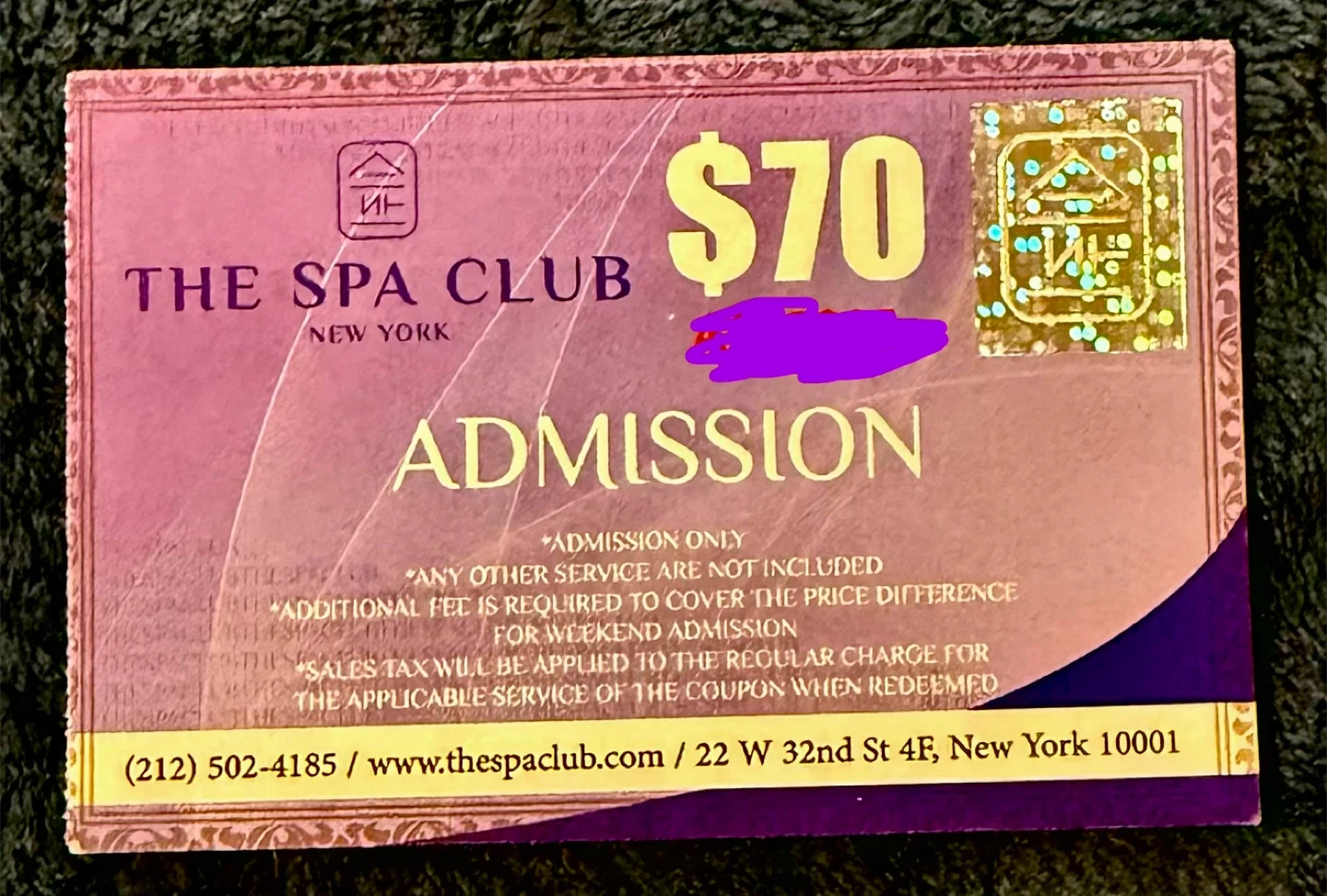 This is an admission ticket for The Spa Club in New York, valued at