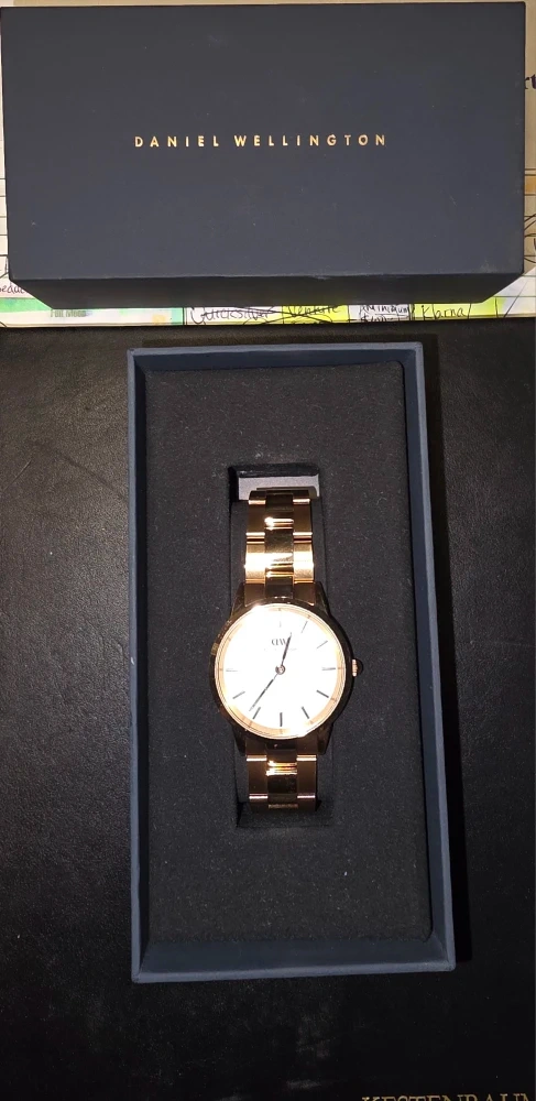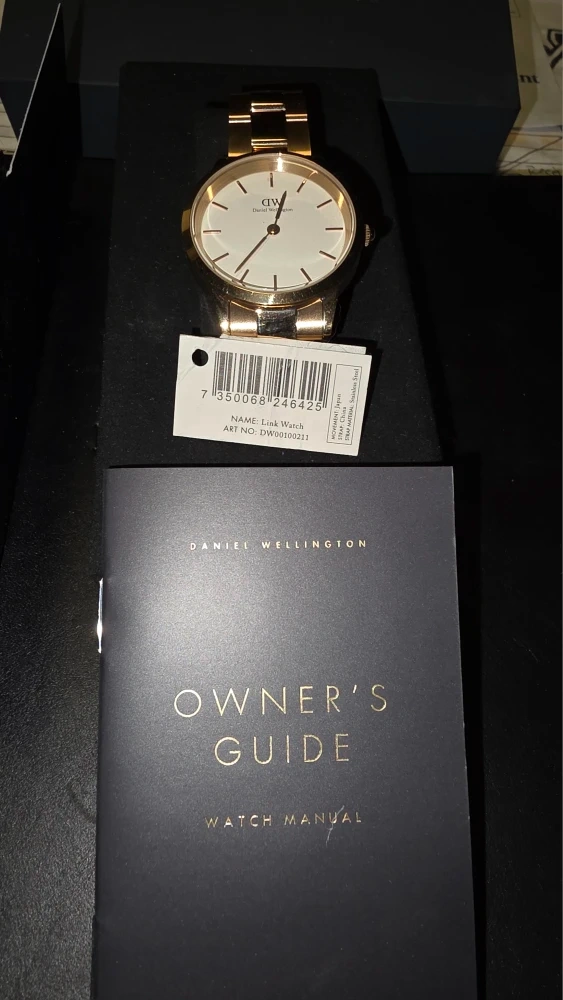 Selling a Daniel Wellington Link Watch, model number DW00100211. It comes with the original box and owner's guide. The watch features a stainless steel strap and is in great condition