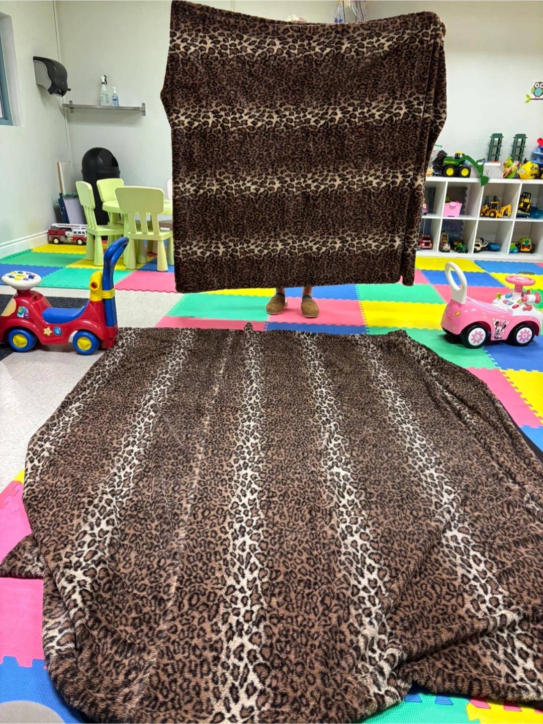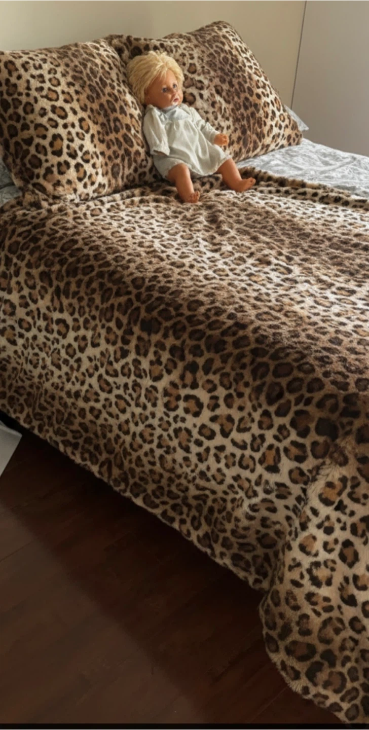 Cozy leopard print faux fur blanket. Super soft and warm material. It's perfect for snuggling up on the couch or adding an extra layer of warmth to your bed. It doesn't have pillowcases. One blanket is large, but it was used very gently, used couple times for decorative purposes (no one used it). The second one is new, never used. The photos are not great. I'll take others if required big one-25$, small -20$