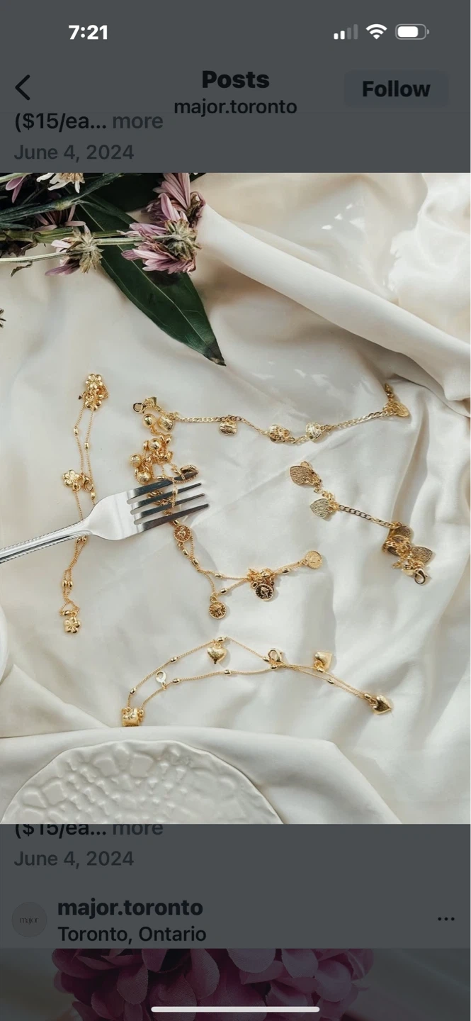 Two delicate gold-tone anklets, each with various charms like hearts and flowers. Perfect for adding a touch of sparkle to your summer outfits! Adjustable clasp for a comfortable fit.