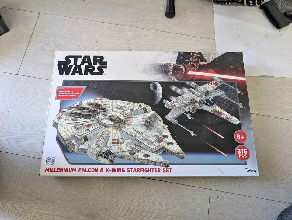 Calling all Star Wars fans! This is the highly detailed 4D Precision Paper Model Kit featuring the two most iconic ships in the galaxy: the Millennium Falcon and the T-65 X-Wing Starfighter.