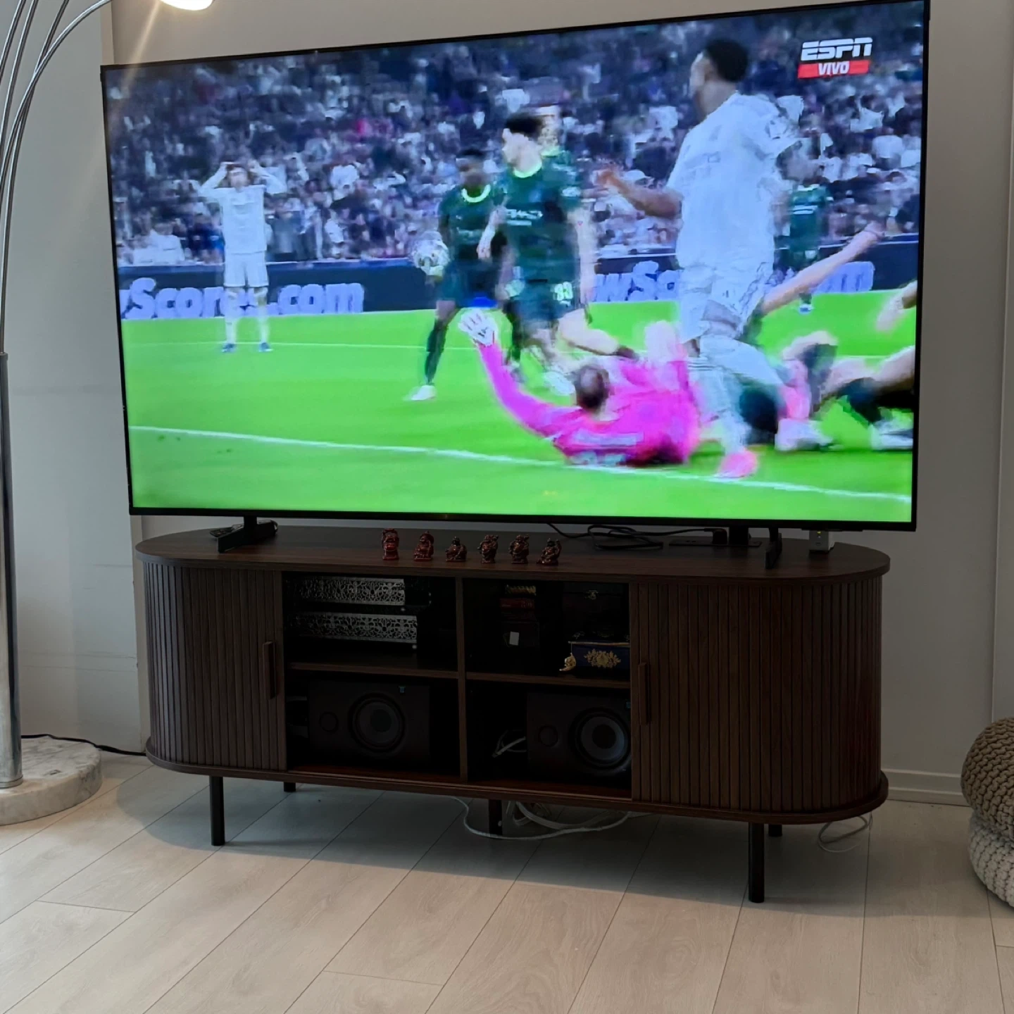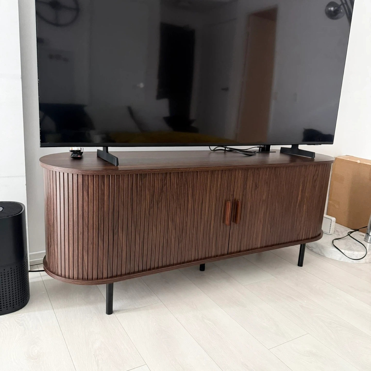 Mid-Century Modern Style TV Stand with Slatted Doors