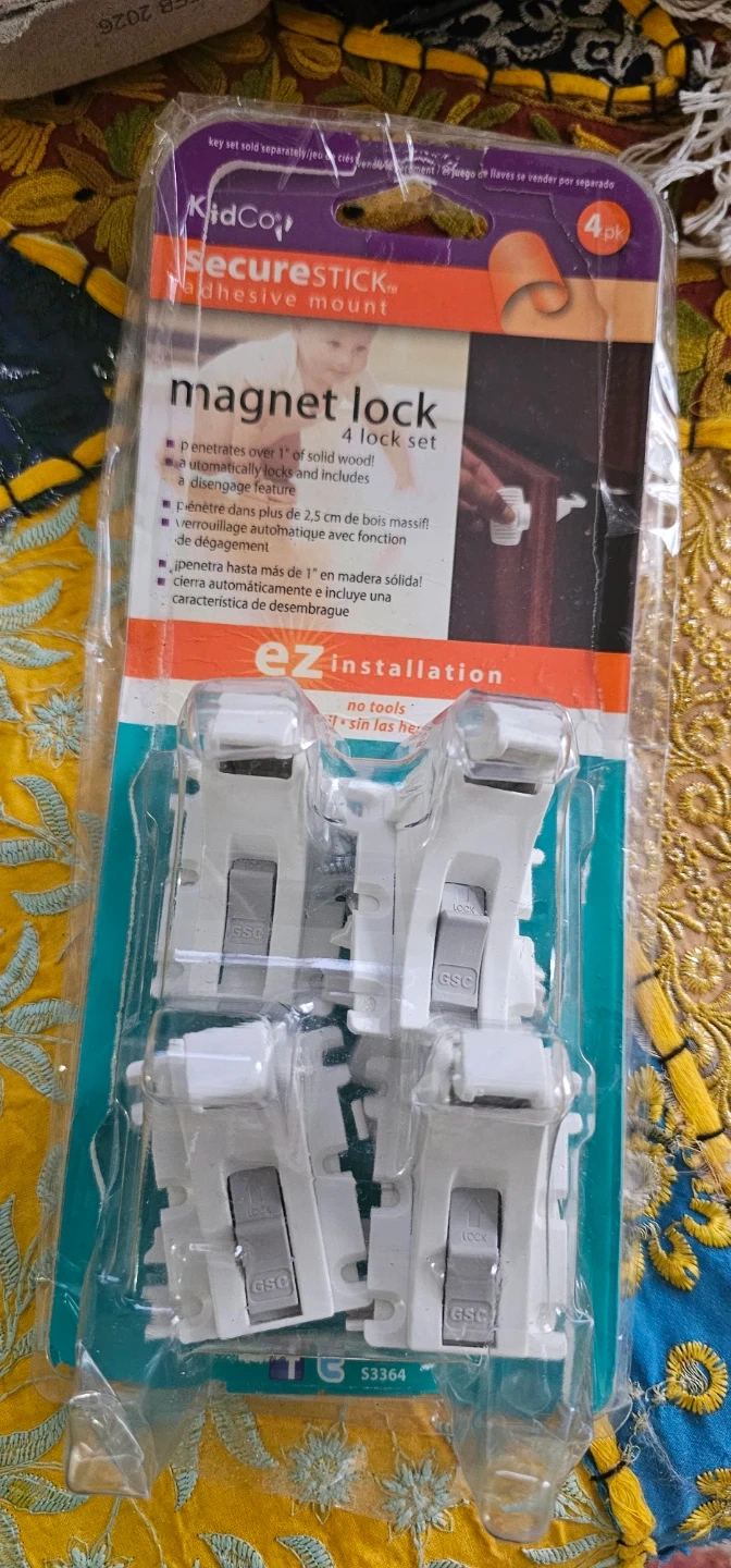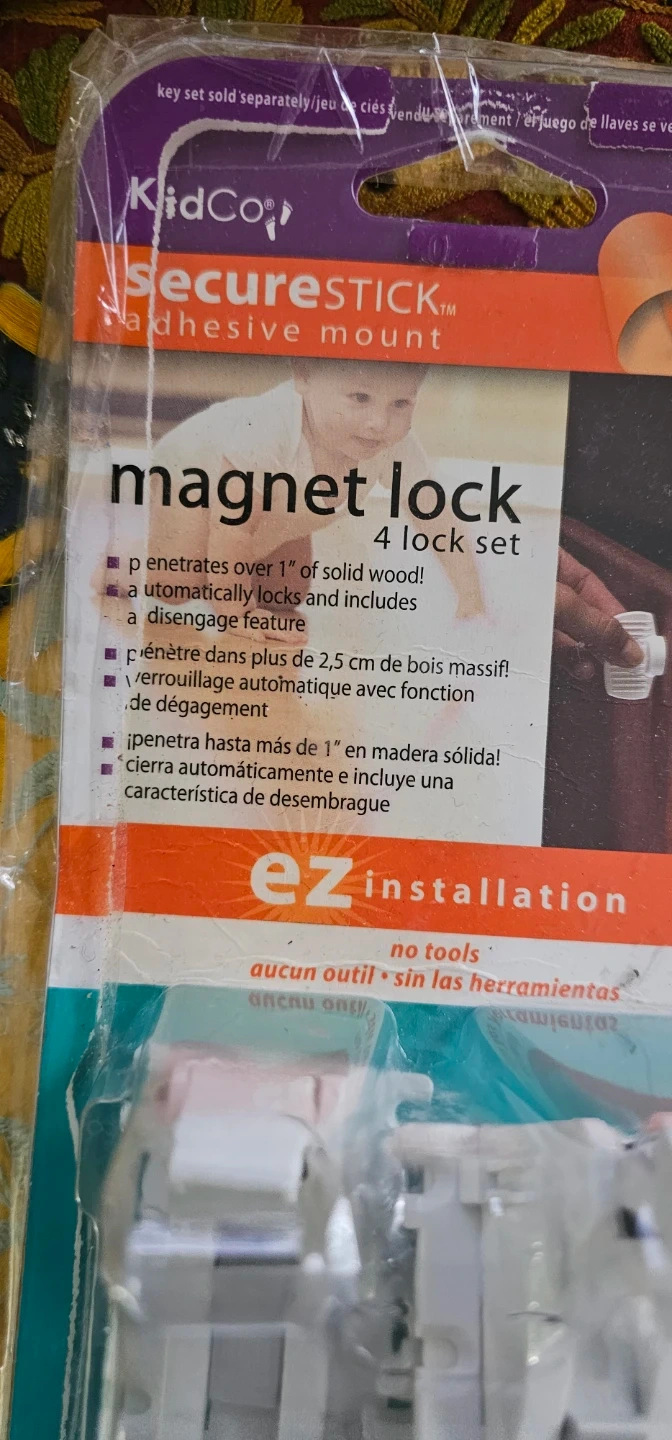 This KidCo magnetic lock set includes 4 locks for child safety. They penetrate over 1" of solid wood and feature an automatic locking mechanism. EZ installation requires no tools.