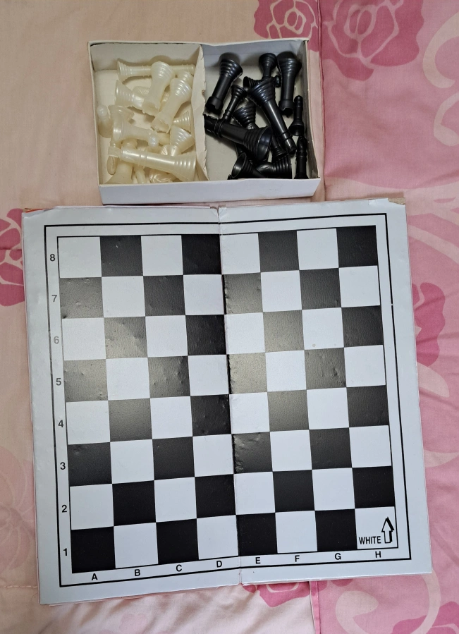 Complete chess set. Includes board and 32 chess pieces. Folding board. Excellent condition. Great for collectors or casual players.