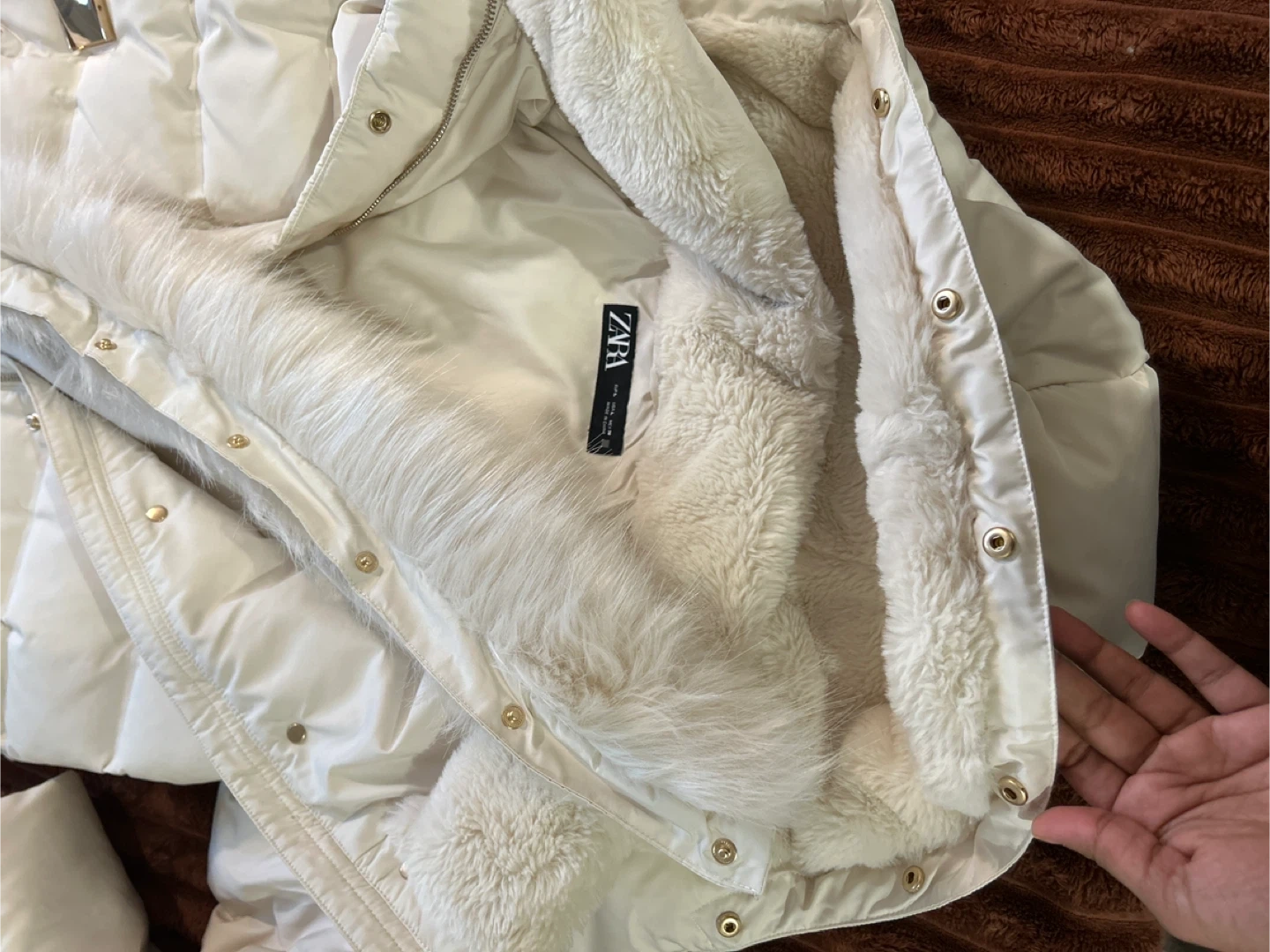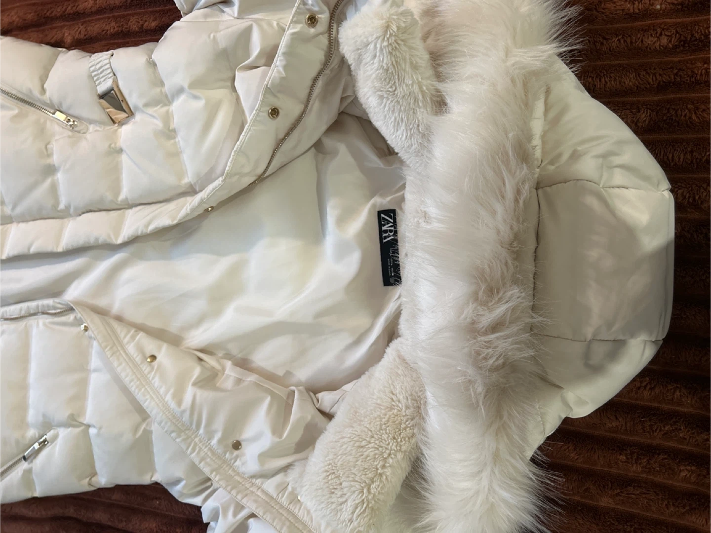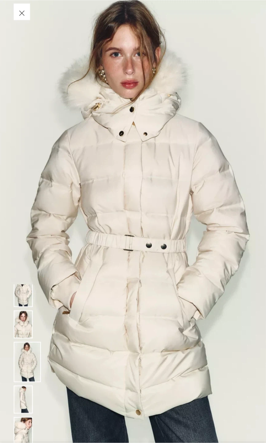 Zara Puffer Coat with Faux Fur Hood - Size S