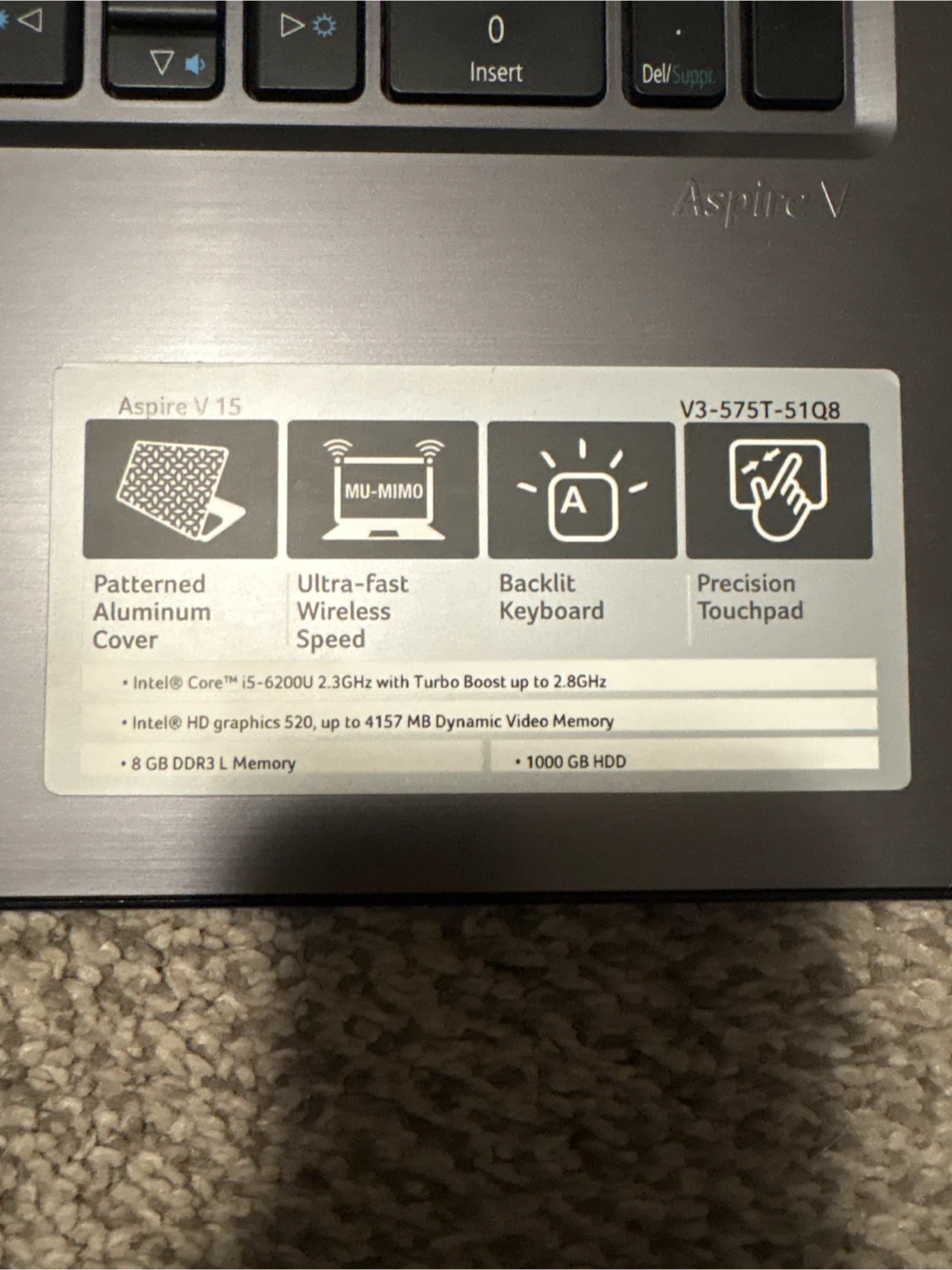 Selling an Acer Aspire V15 laptop.