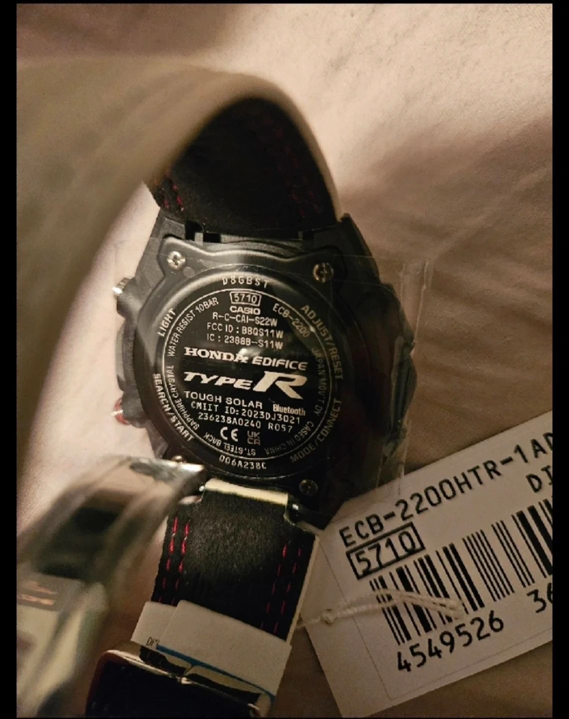 Selling a limited edition brand new in box Casio Edifice Honda Type R ECB-2200HTR-1ADR watch! It comes with the box and instructions. This watch is a special collaboration model with Honda Type R. It features Bluetooth connectivity and is water resistant to 10 bar.