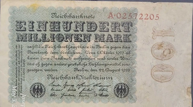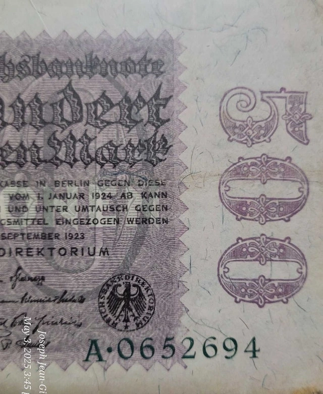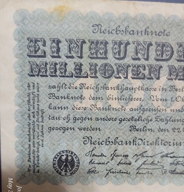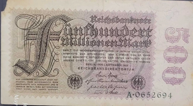 Includes one 1923 100 million mark and one 1924 500 million mark from Germany. Both are circulated and in good to fair condition. Please see pictures for details.