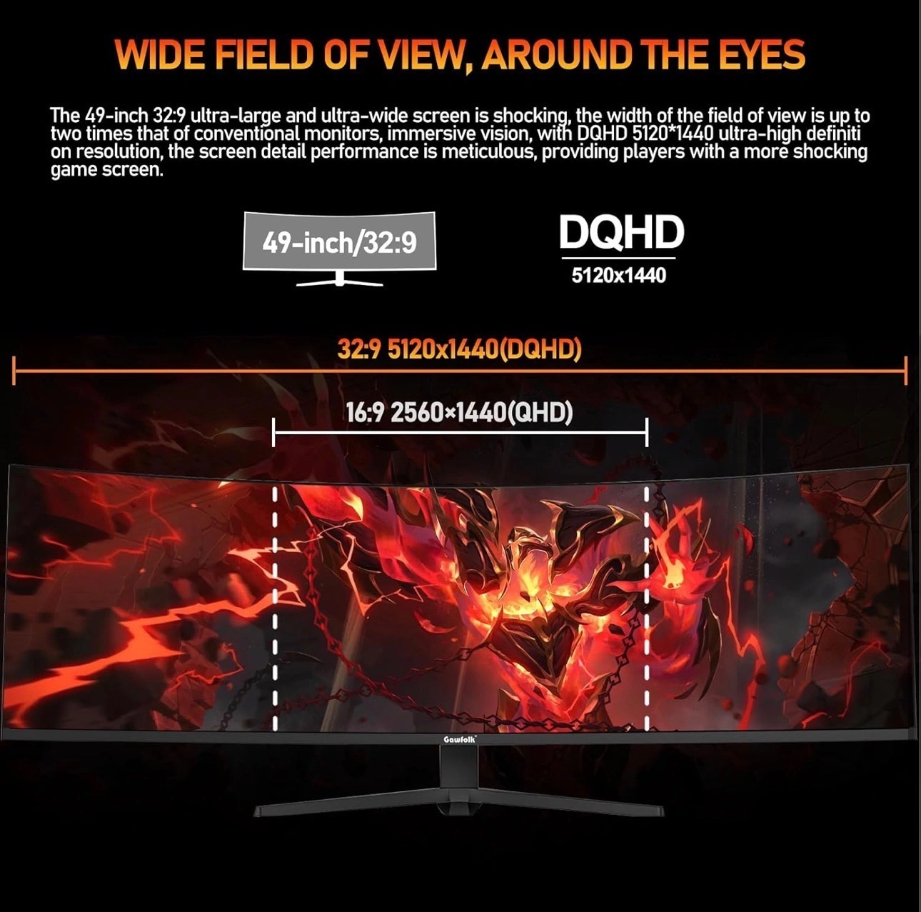 Gaming Monitor 49" Ultra-Wide 1ms 165Hz DQHD 5120×1440 120% sRGB
