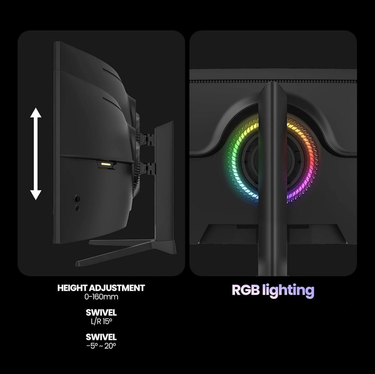 【 Multi-Dimensional Flexible Adjustment + RGB Ambient Light, Adapting to Diverse Usage Scenarios】It supports 16cm height adjustment and left-right rotation functions. You can freely adjust the screen height and angle according to your sitting posture, maintaining a comfortable position even during long hours of office work, and adapting to different desktop spaces and usage habits. The built-in RGB ambient light on the back shell allows customization of light modes and colors, which not only creates an e-sports atmosphere but also forms a visual linkage with desktop peripherals, making the monitor a highlight of the desktop's appearance.