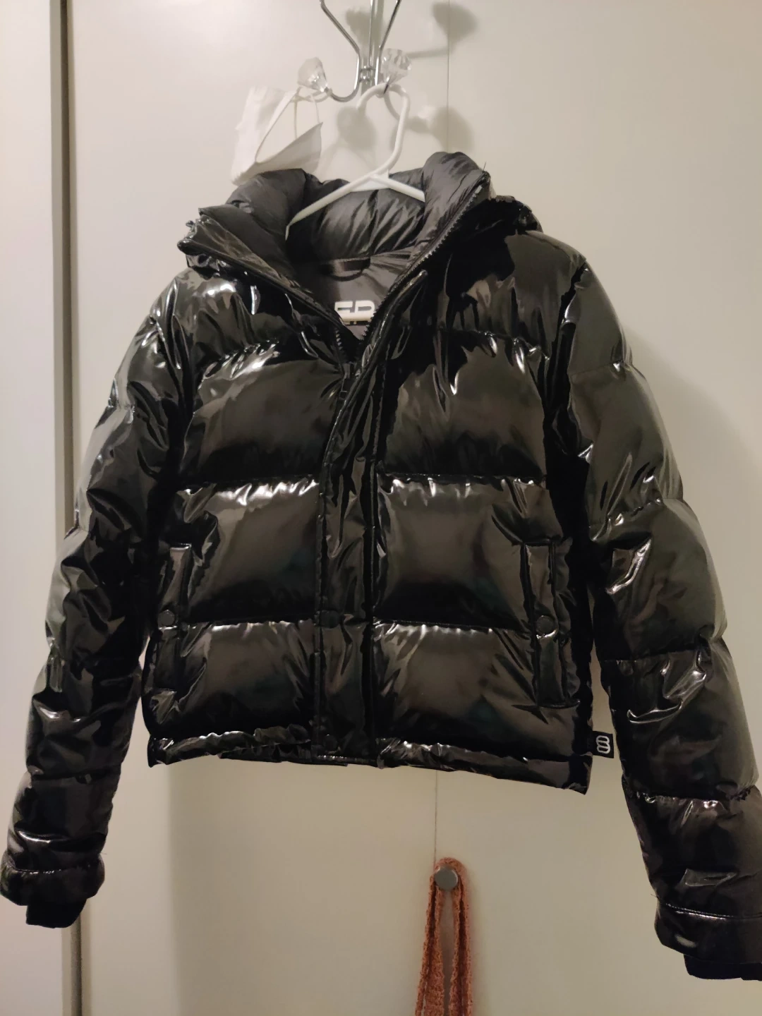 Shiny black puffer jacket cropped from Aritzia. It's a size 3XS. Excellent like new condition.