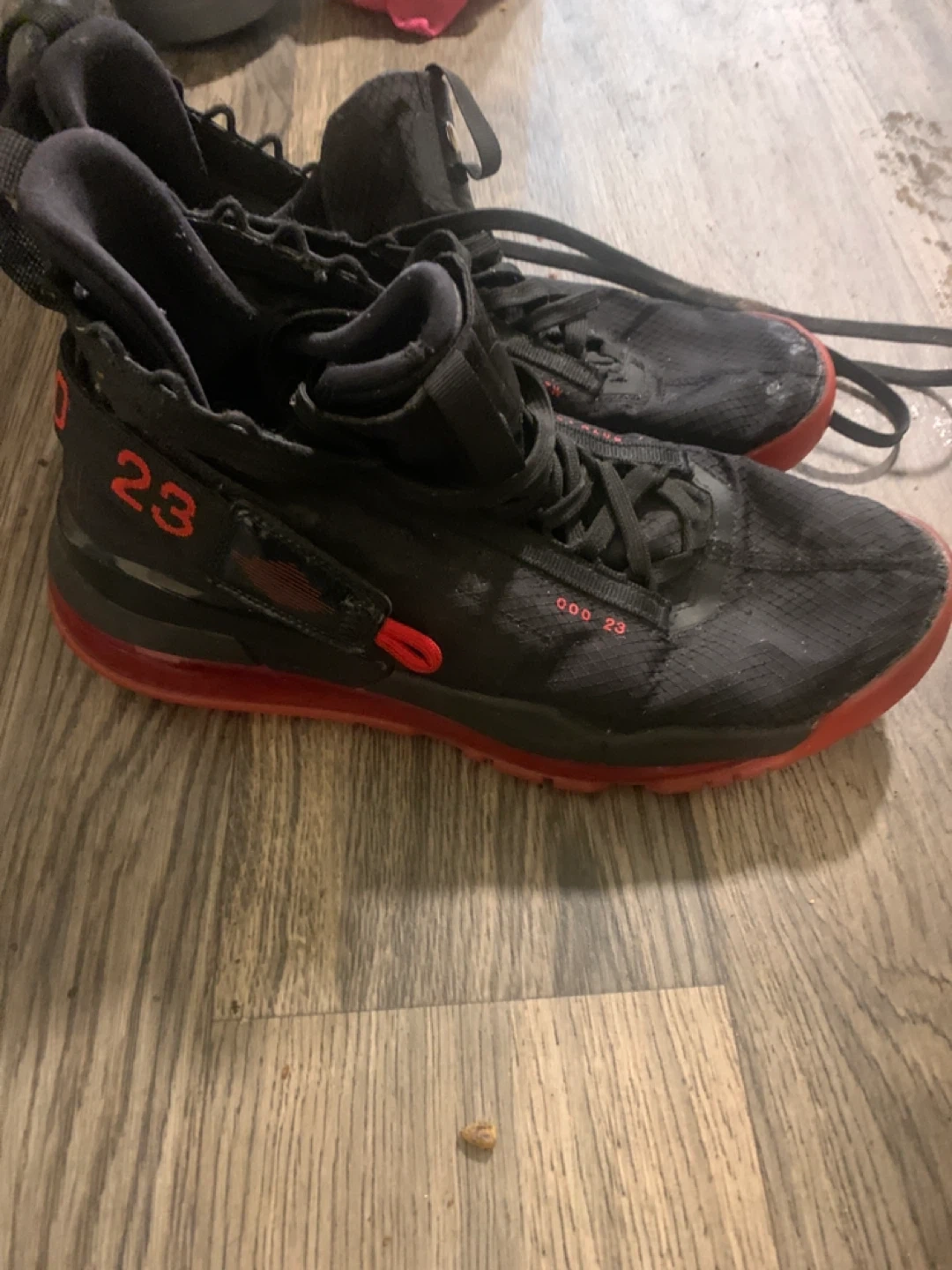 Black and red Nike Air Jordan XXXIV basketball shoes. Features a breathable mesh upper and visible Air unit in the sole. These are a men's size 9