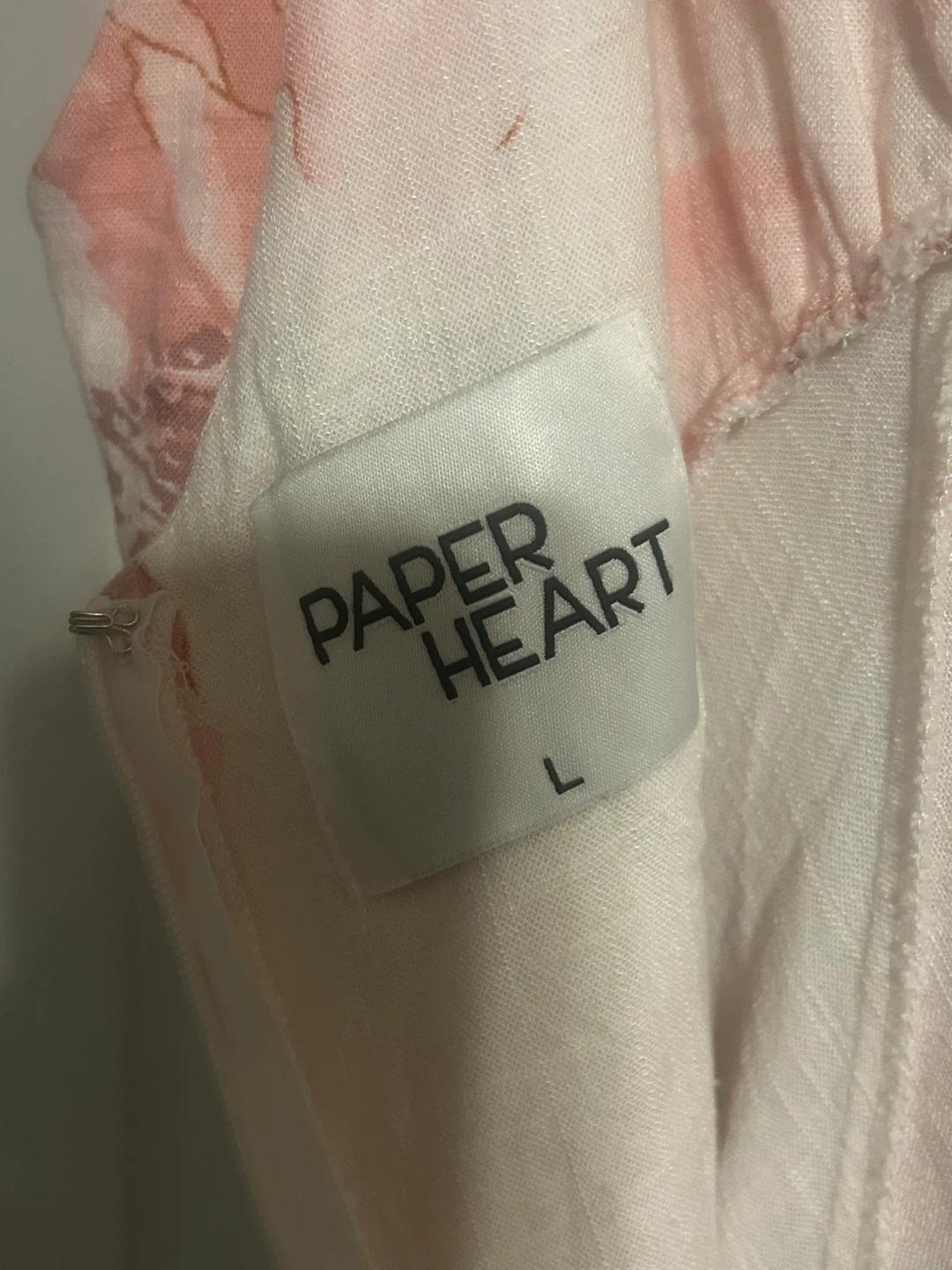This Paper Heart maxi dress features a beautiful floral print in pink and white. It's a size large with a flattering V-neckline and a zipper closure. Perfect for summer occasions!