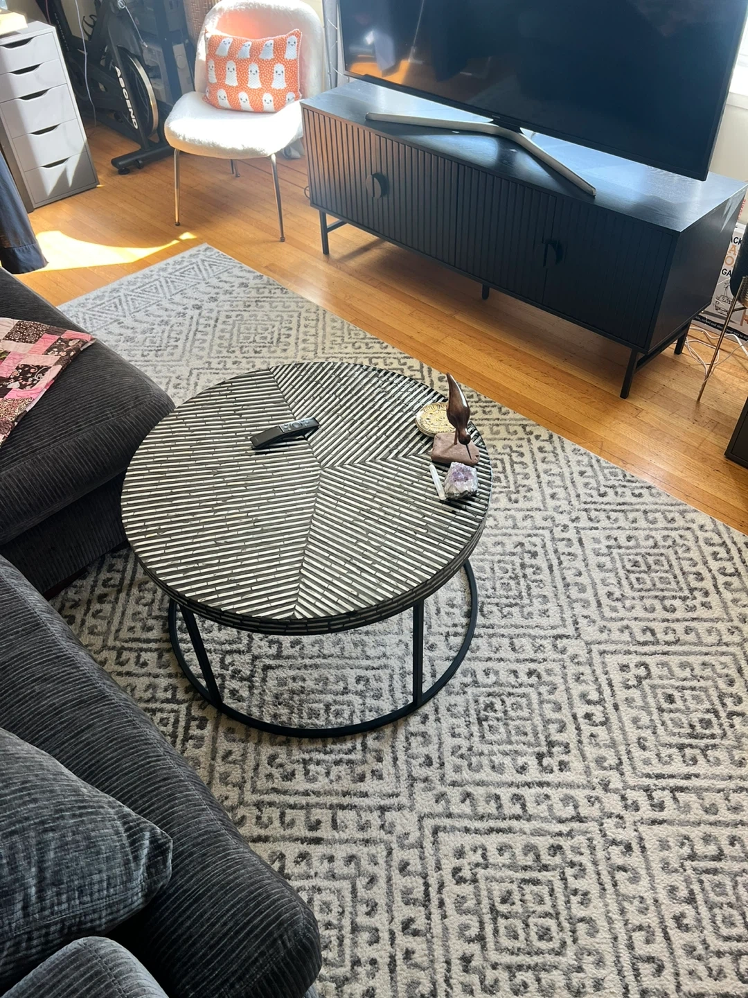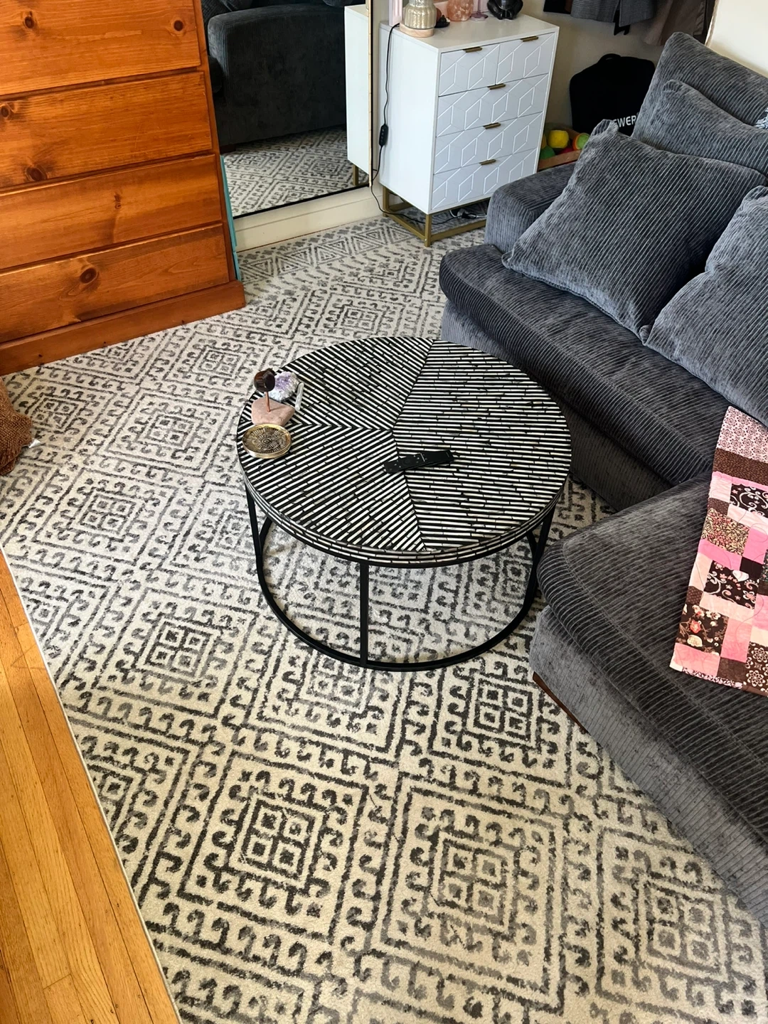 Large 8x12 rug! No rips or stains. Comes from a pet friendly home (dog) but vacuumed several times / week and kept clean! Just feeling like I need to change up my space :) pickup is in kits! Mop
