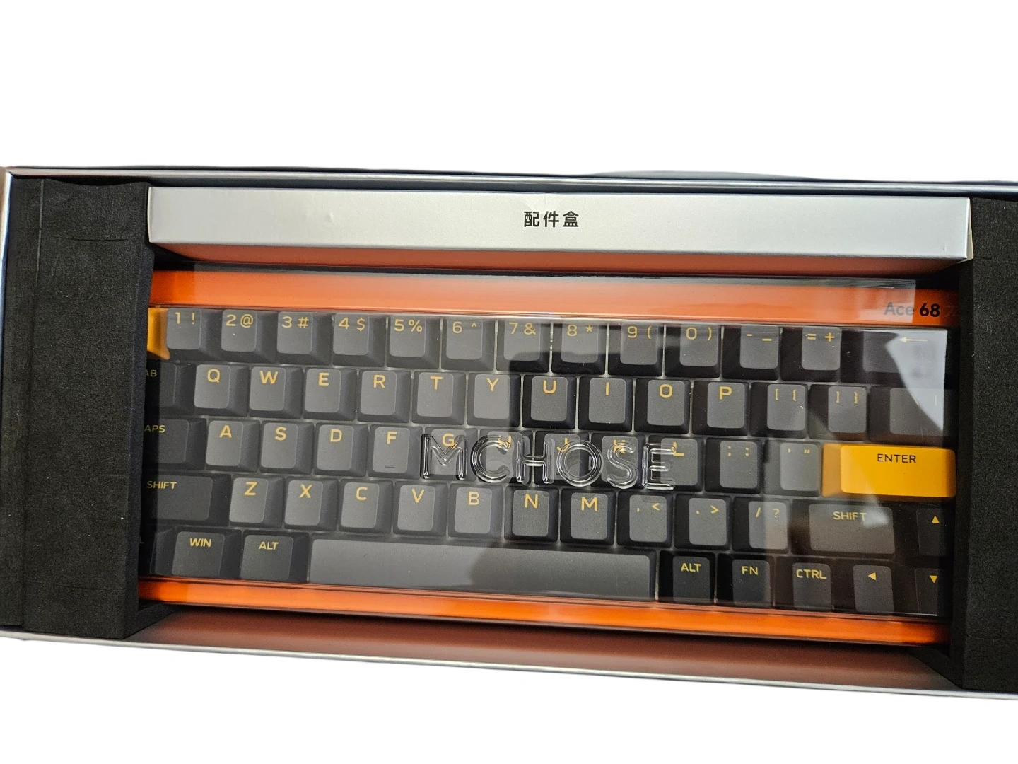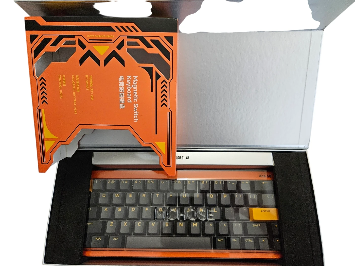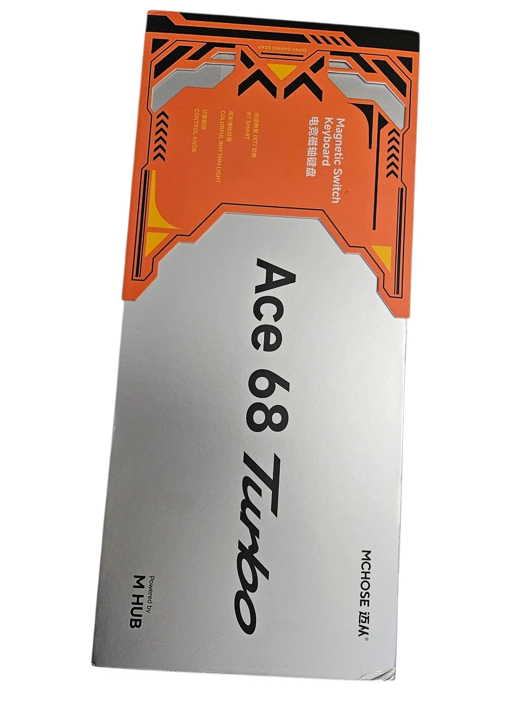 This is a MCHOSE Ace 68 Turbo keyboard with magnetic switches. It's a compact 68-key layout. The keyboard comes in its original packaging.
