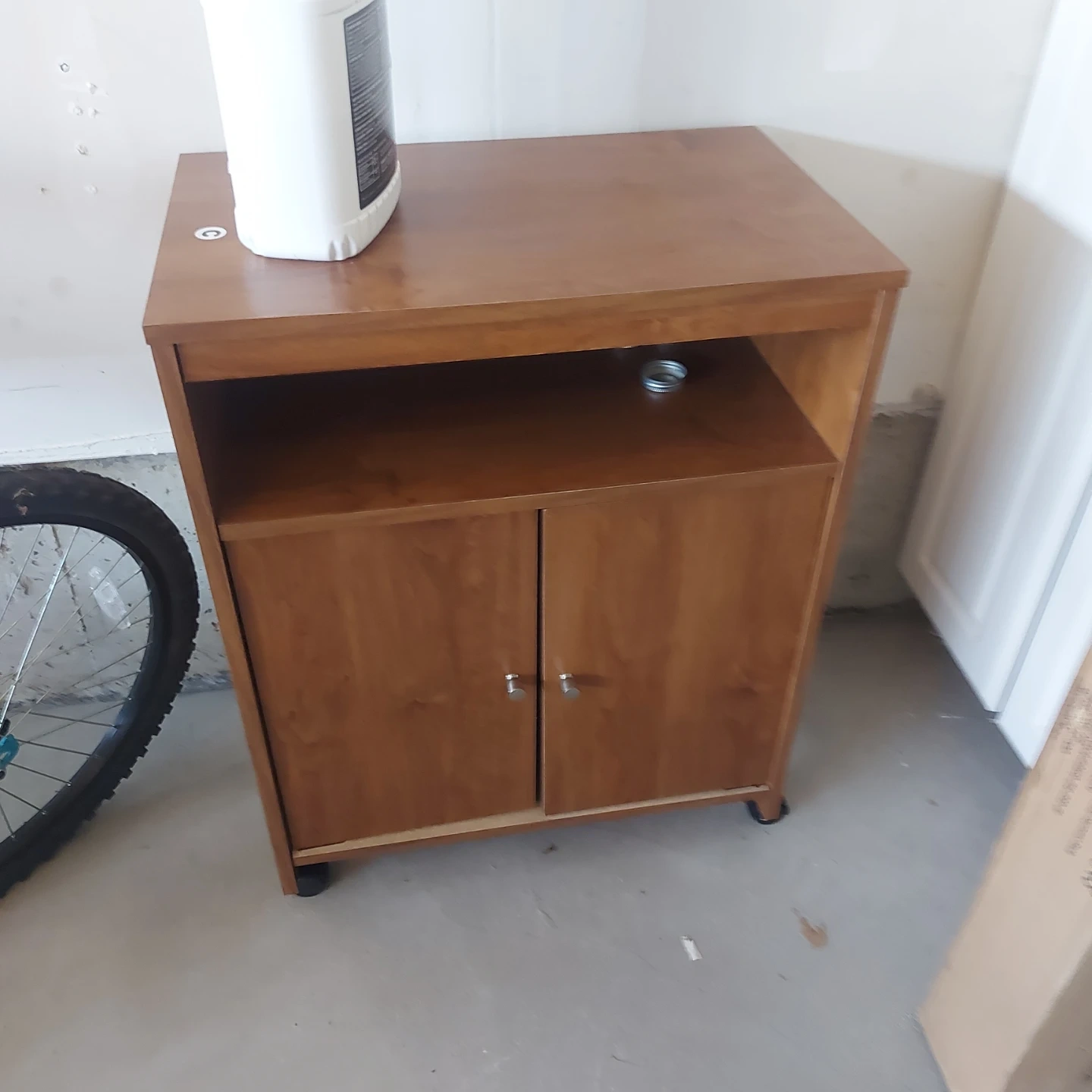 Compact wooden side table with a cabinet and open shelf. Features a light wood finish. It's great for small spaces needing storage. Perfect for a bedroom or living area.