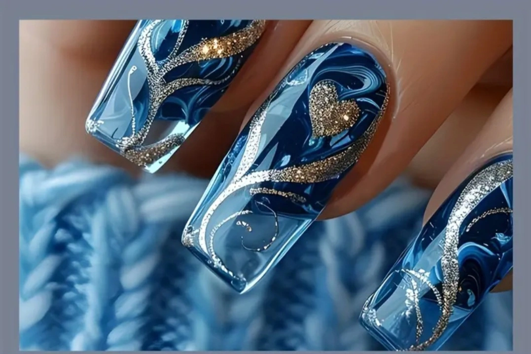 These are a set of brand new, blue marble press on nails! They come with 24 jelly tabs, a mini file and a stick. Perfect for a quick and easy manicure at home