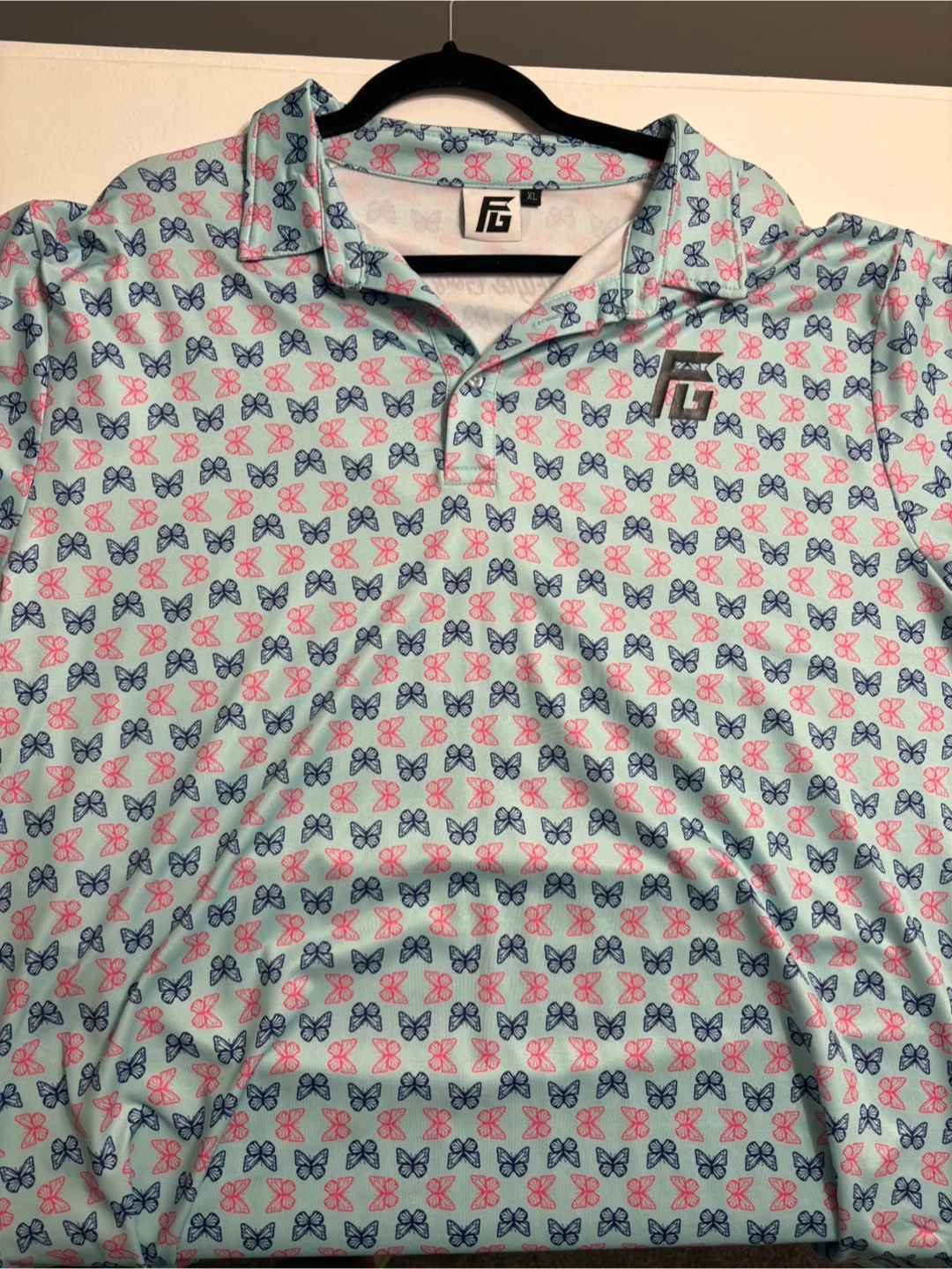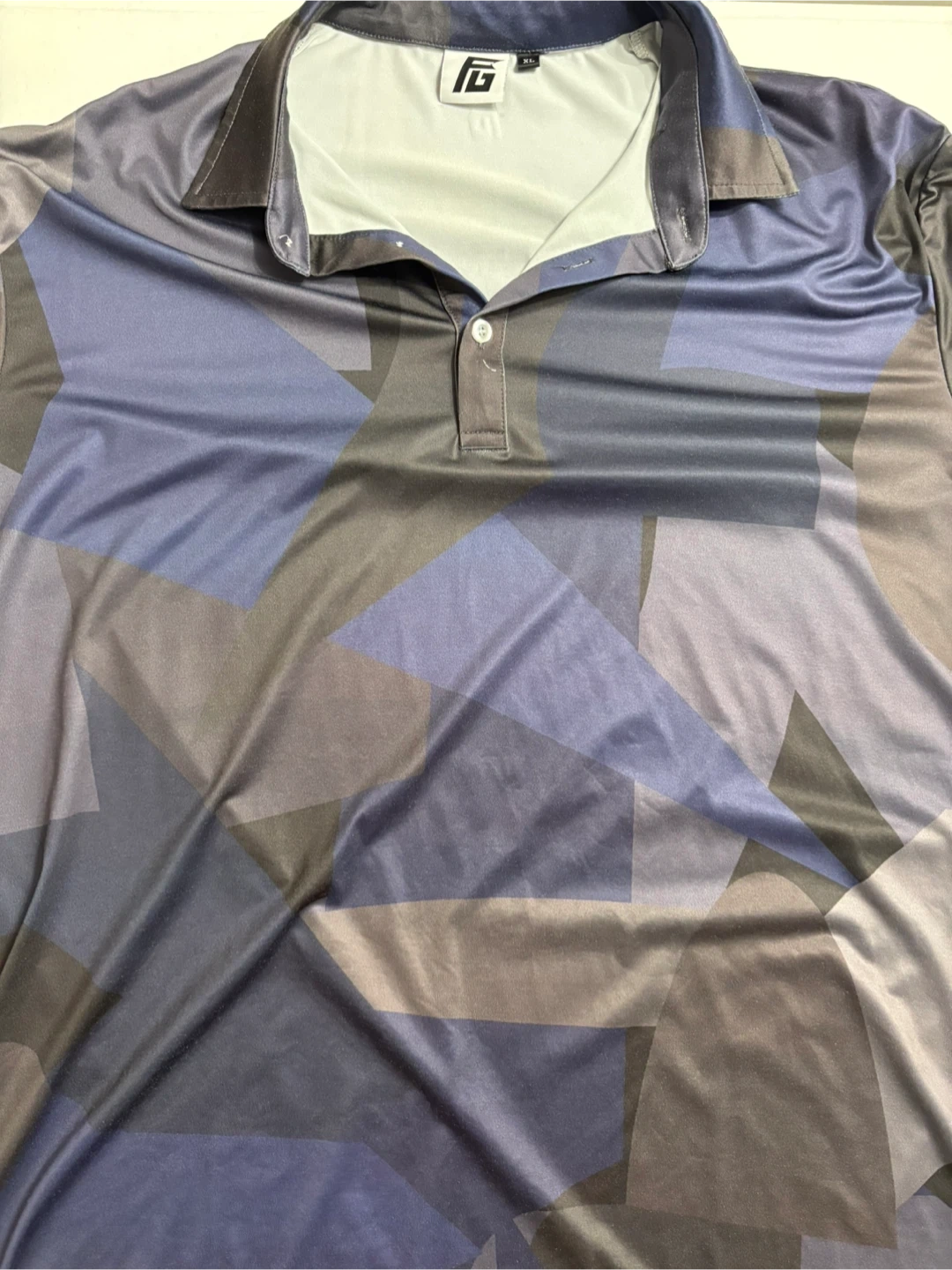 Here are some FG golf polo shirts in size XL. They feature unique patterns and are perfect for a day on the green!