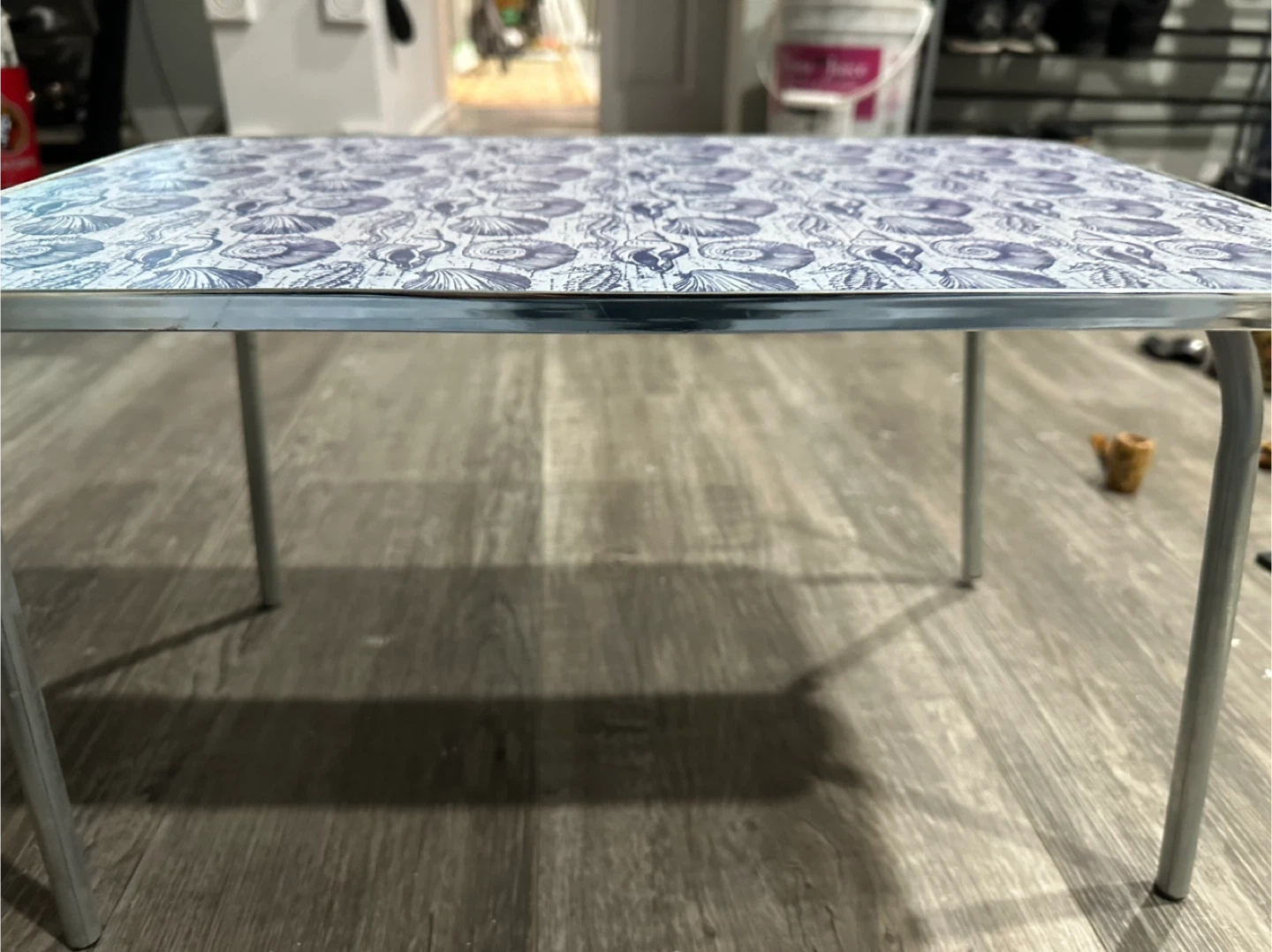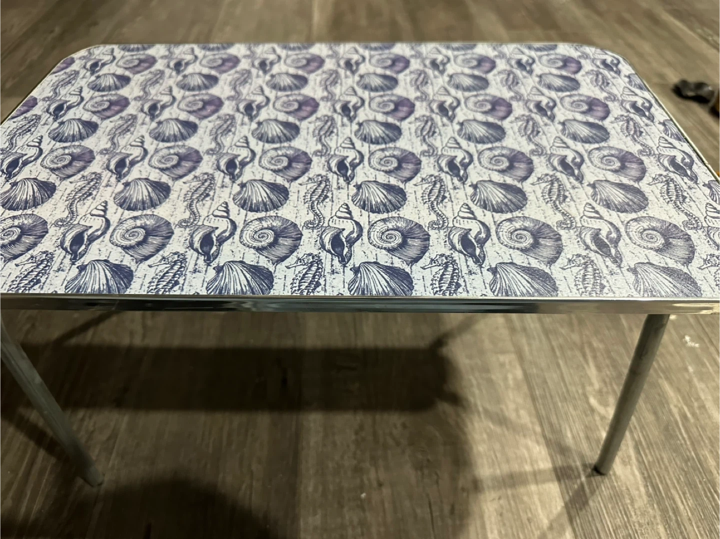 Selling a cute folding lap desk featuring a seashell pattern! It's perfect for working or snacking comfortably from your couch or bed. The legs fold easily for convenient storage