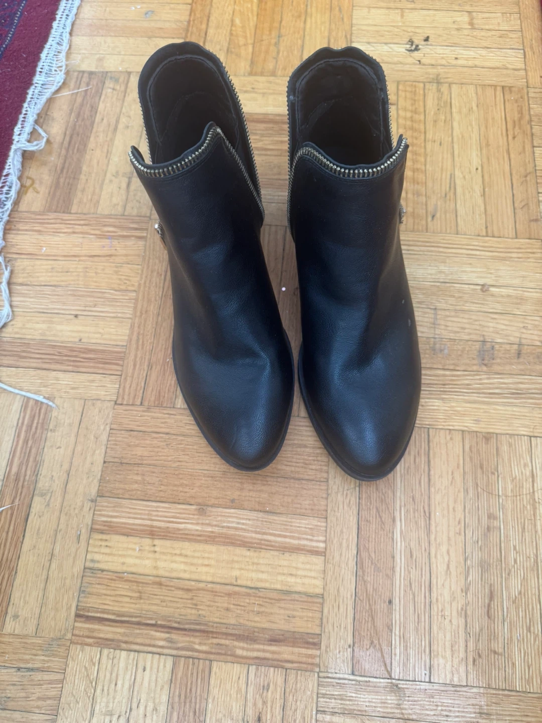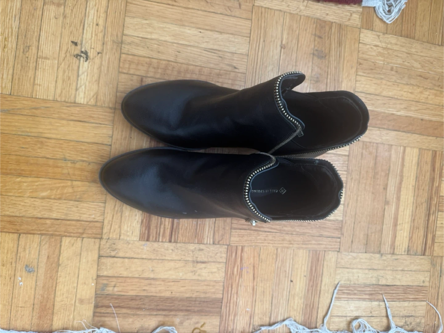 Call It Spring black leather ankle boots with a side zipper closure. These stylish boots are perfect for everyday wear.