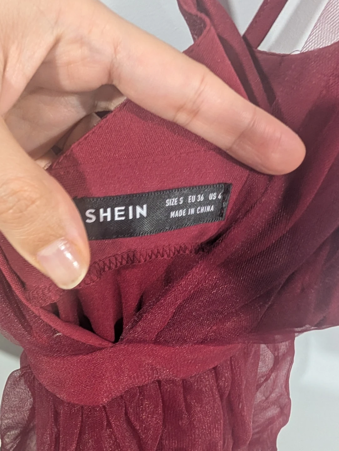SHEIN Women's Burgundy Tulle Gown - Size S