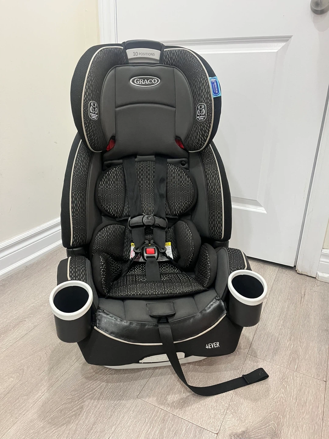 This Graco 4Ever car seat offers 10 positions for growing kids. It features ProtectPlus Engineered for safety. Steel frame construction.