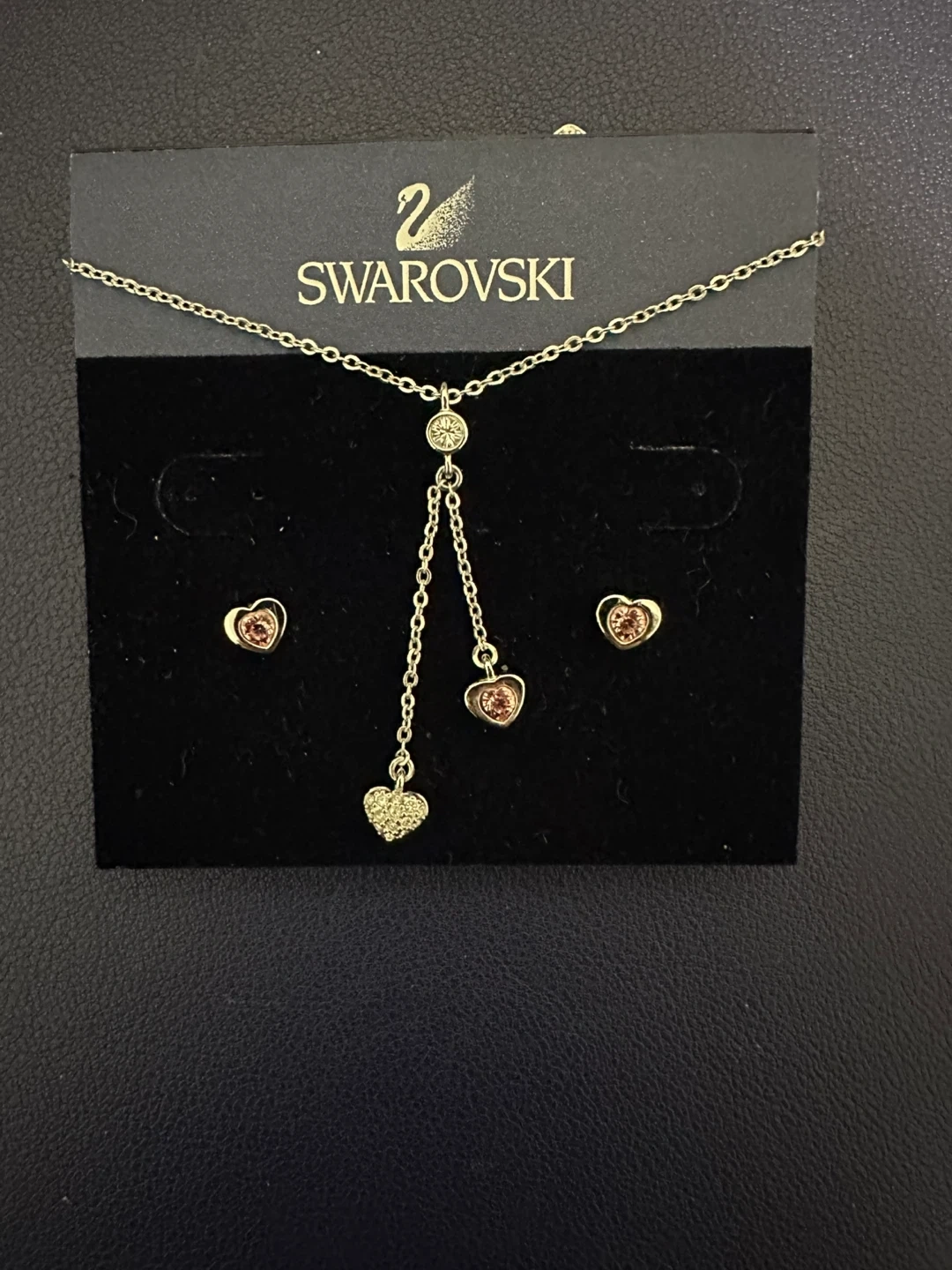 Selling a lovely Swarovski necklace and earring set! The set features delicate chains and heart-shaped accents, perfect for adding a touch of sparkle to any outfit. Box not included.