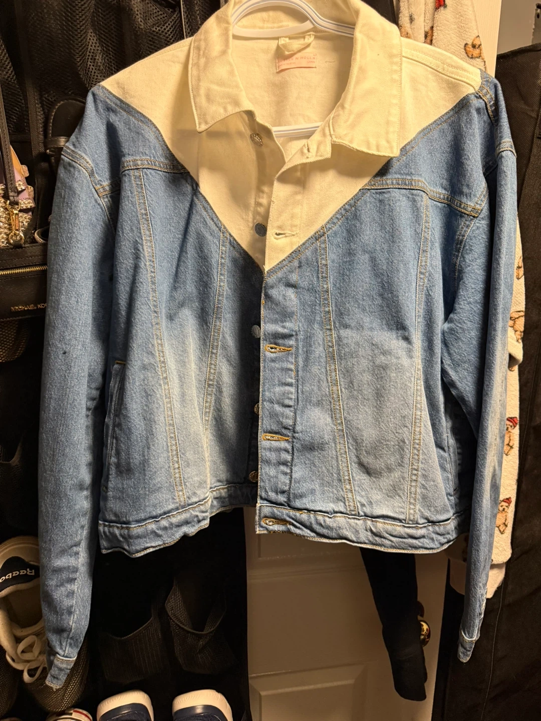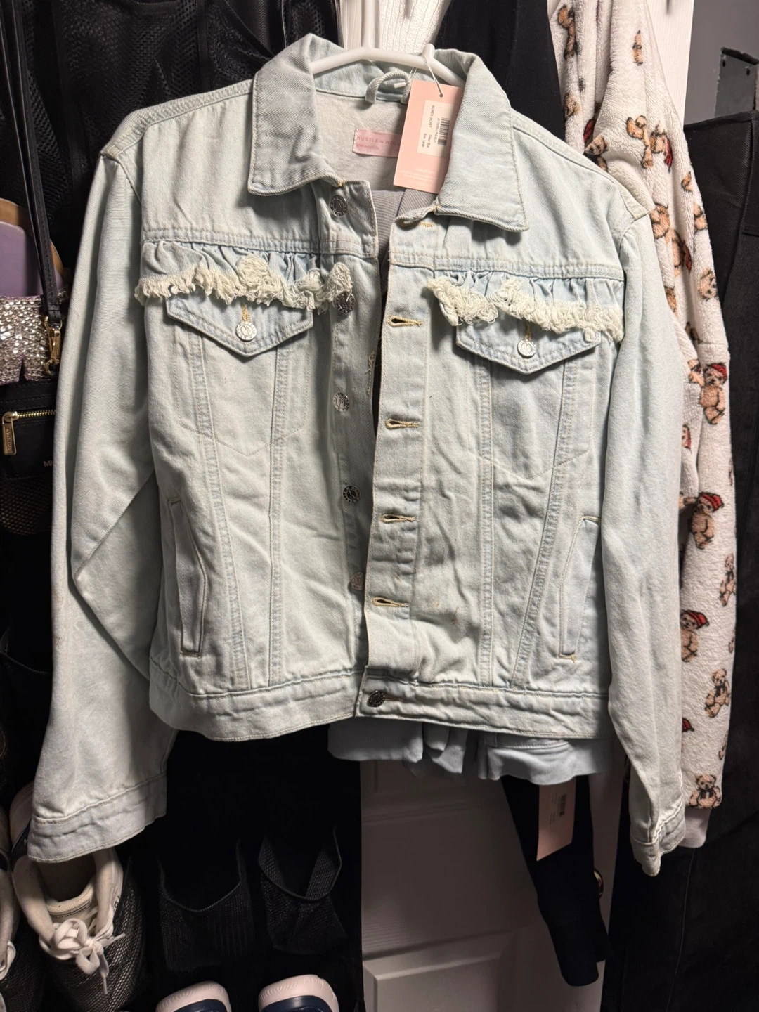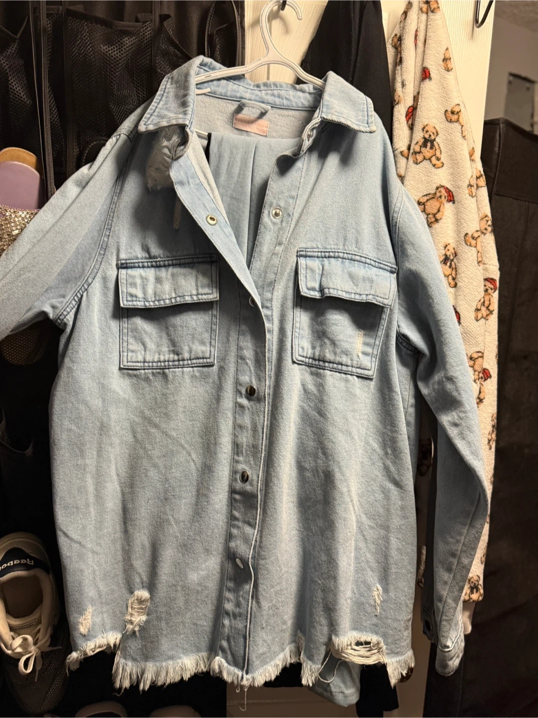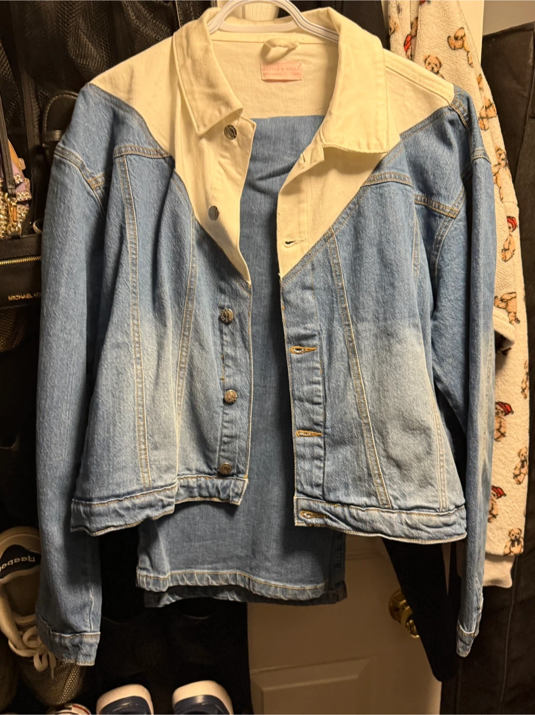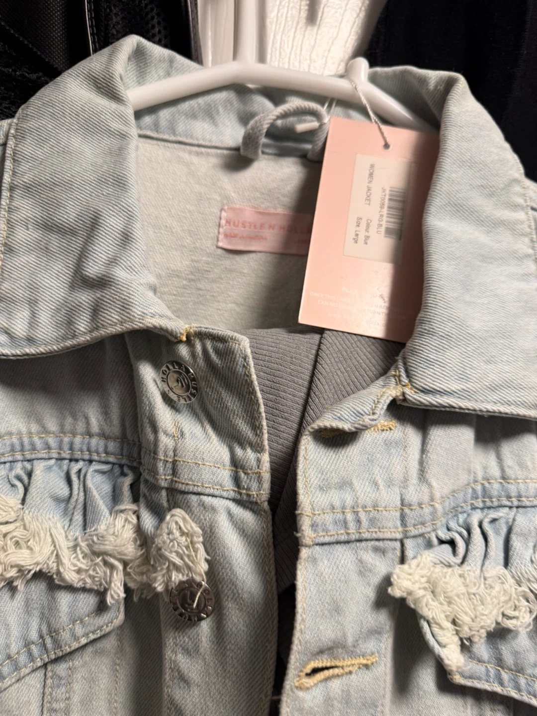 I have a few clothing items for sale. There is a Tommy Hilfiger patterned shirt and a Hustle & Hype denim jacket. The jacket is a size large.