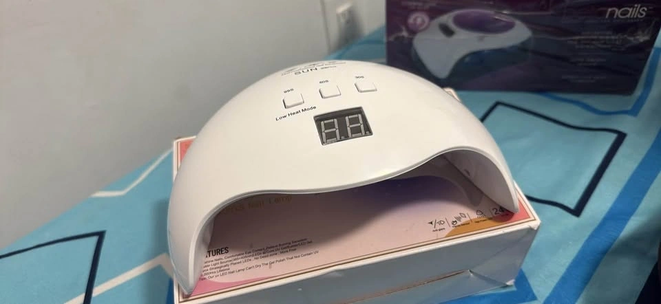 This UV LED nail lamp is designed for curing gel nail polish quickly and efficiently. It features multiple LED beads and a timer function for precise curing times. Suitable for home use or professional salons.