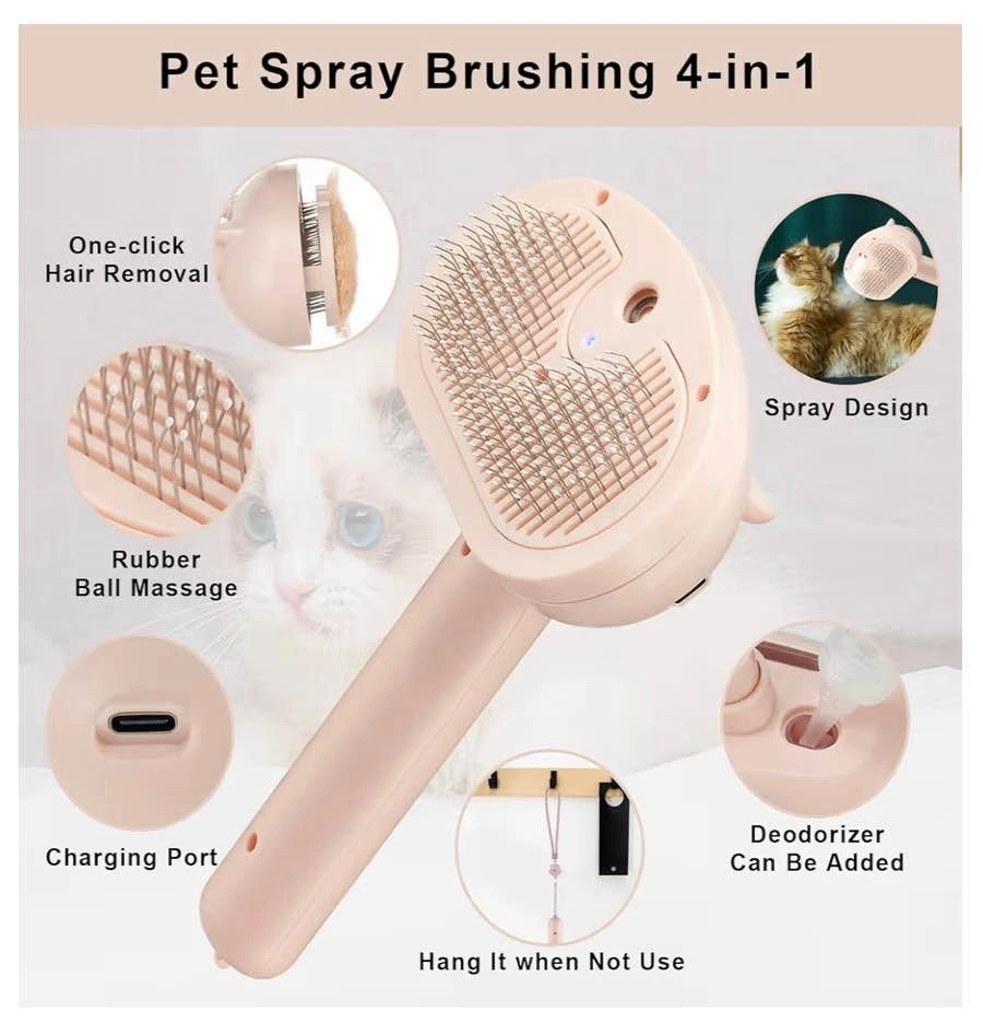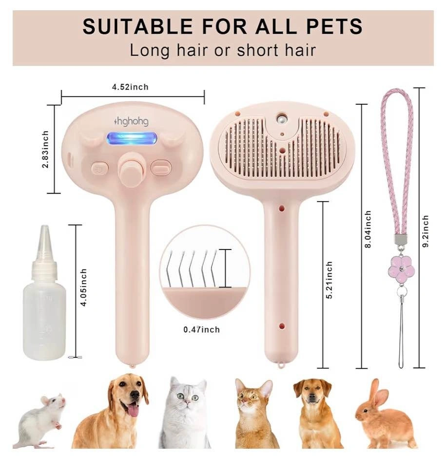 Pet Steam Hair Comb Brush, 4 in 1 (Pink) - New