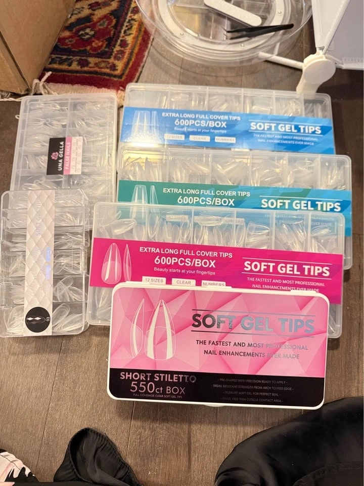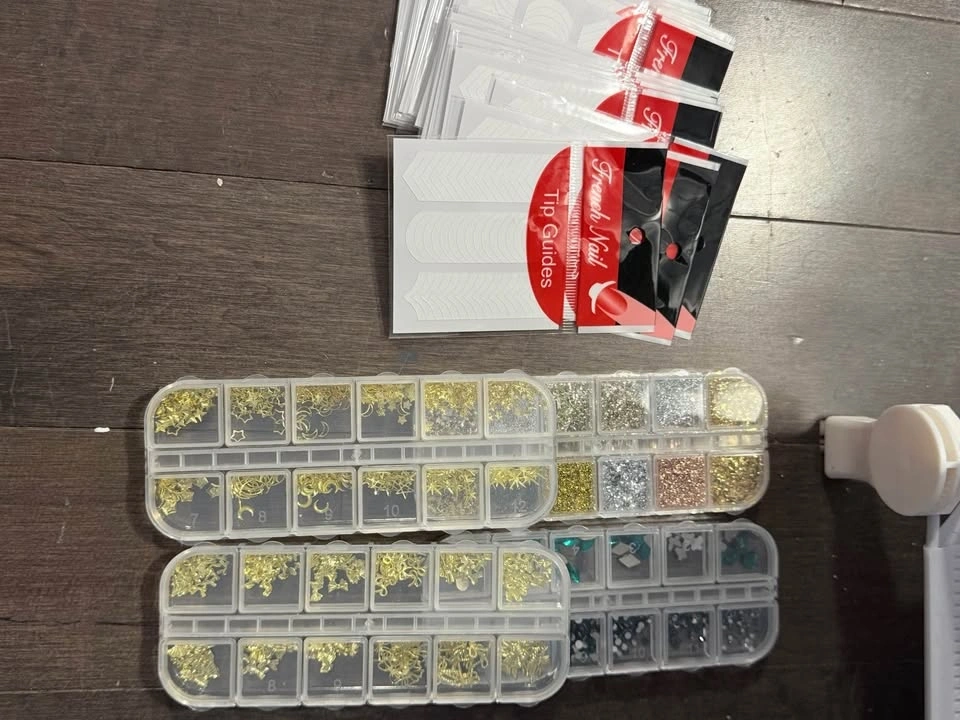 Selling a large bundle of nail products — everything you need to start doing nails or even start a small nail business. I paid over $300 for everything. Includes: 100+ nail items, Gel polishes, Builder gels & glue, Multiple boxes of nail tips, Chrome powders & nail art pigments, Nail stickers & embellishments, Tools, brushes, and files, UV lamp included. Perfect for beginners, students, or anyone starting a nail business.