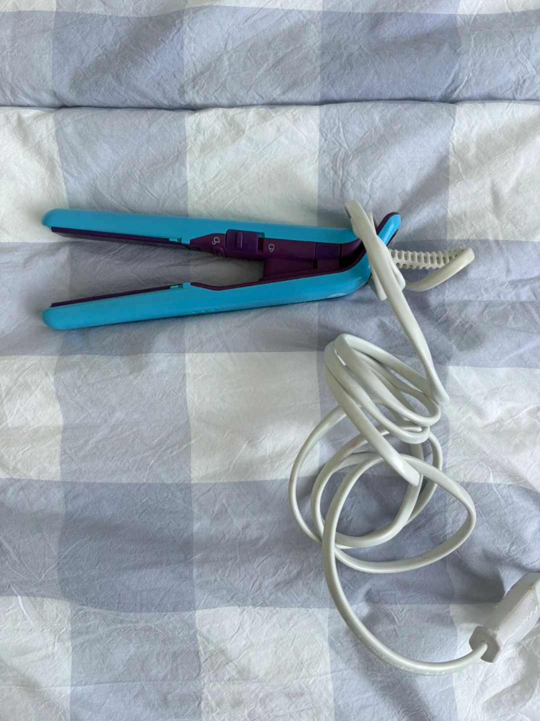Selling a mini hair straightener in blue. It's designed for travel and easy to use. Compact and efficient for quick styling needs!