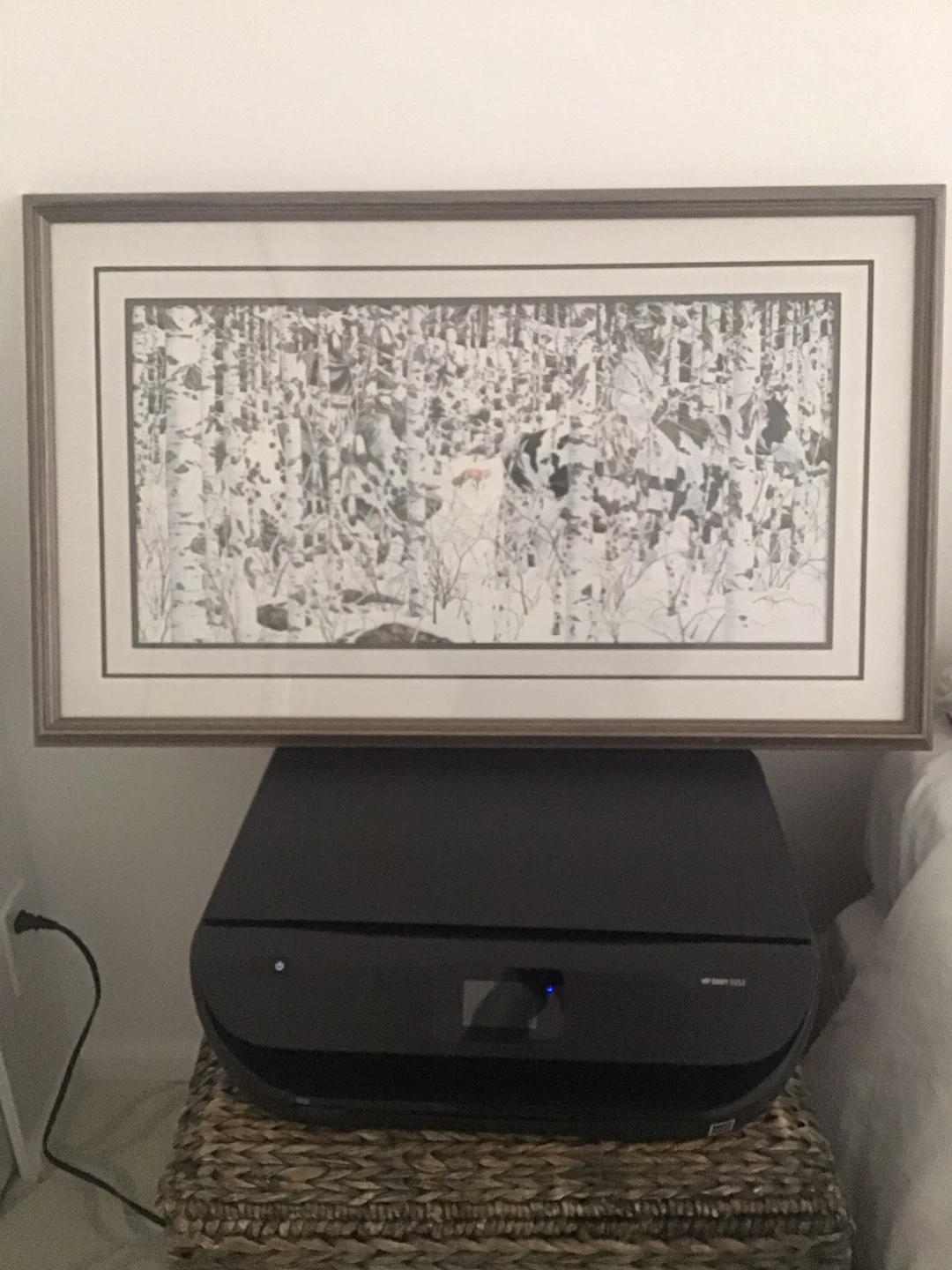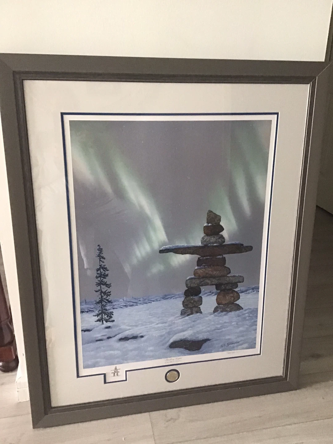 Greg Olson: “Dress Rehersal” $95 Inukshuck $85 Bev Doolittle “woodland Encounter”$95 Flowers (30”x30”) $25 (slightly bent wooden frame)