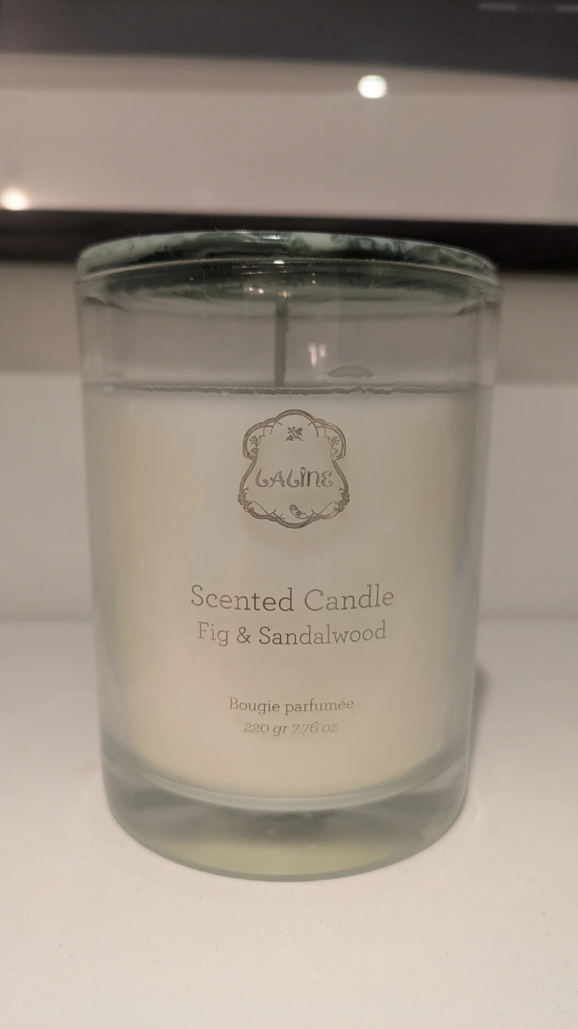 Unused Laline scented candle in a Fig & Sandalwood scent. It's in a glass jar with 220g / 7.76 oz of wax. Comes with original presentation tube.