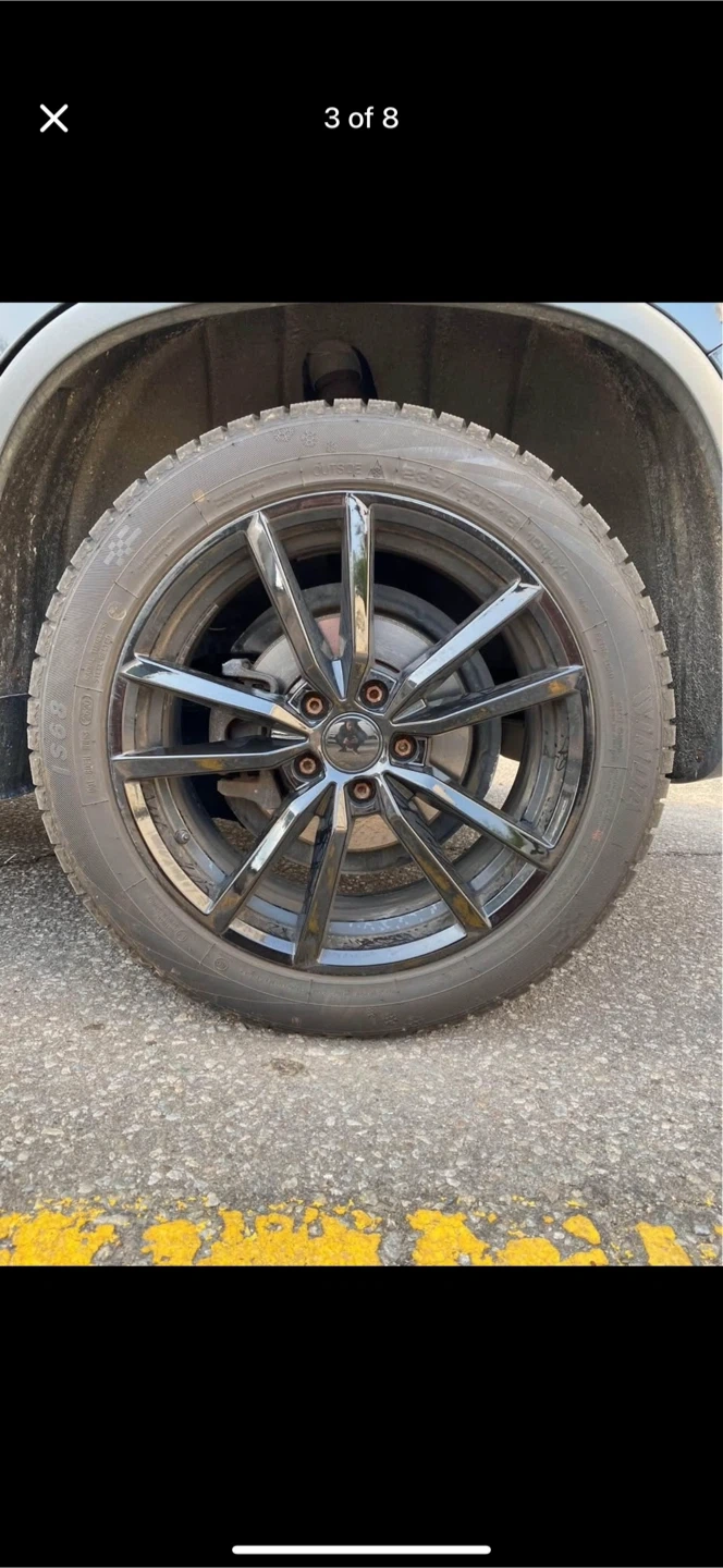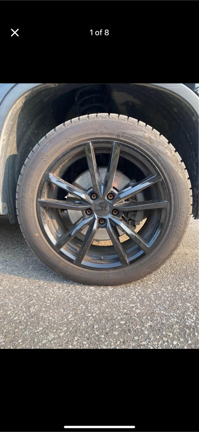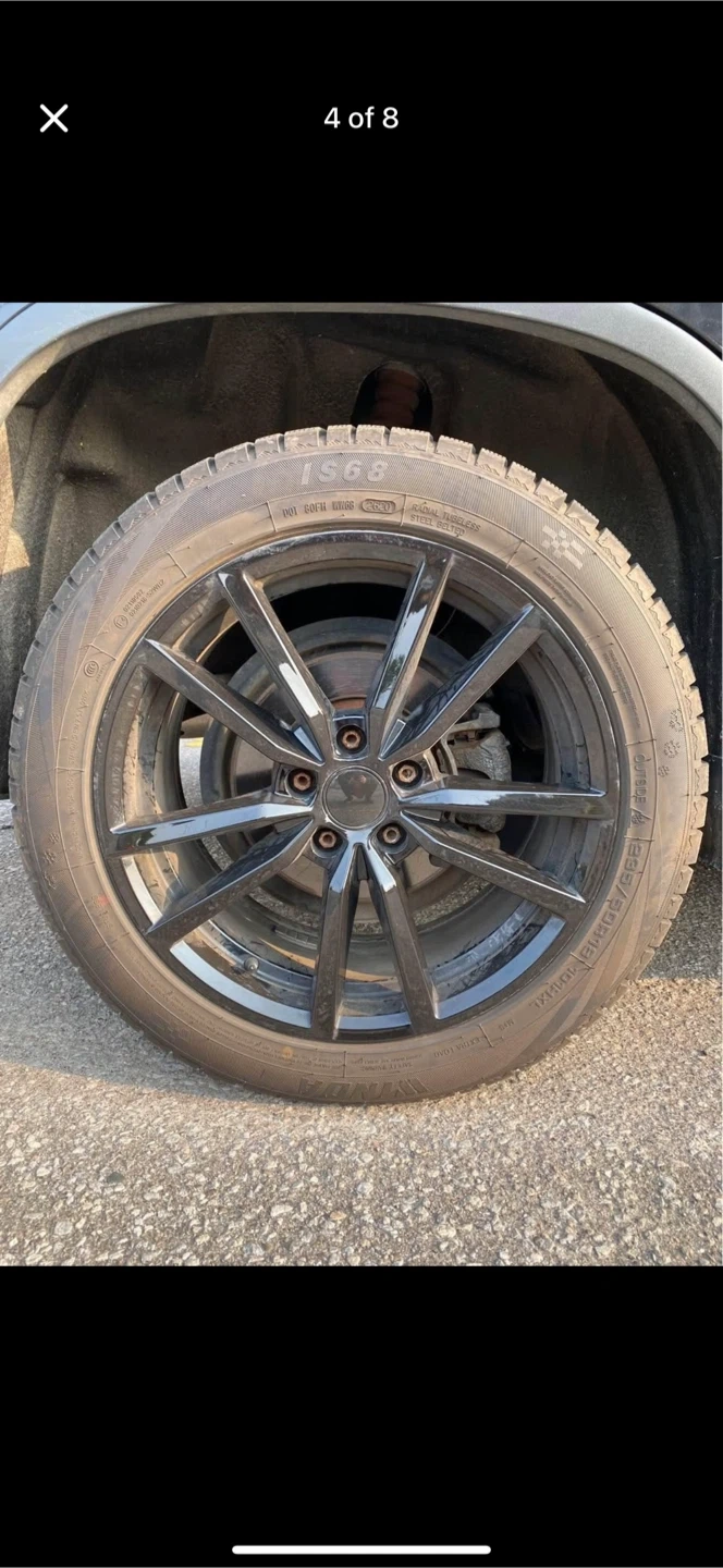 Set of four black alloy rims with winter tires. Rim size is 18 inches with a tire size of 245/50R18. These would be great for winter driving.