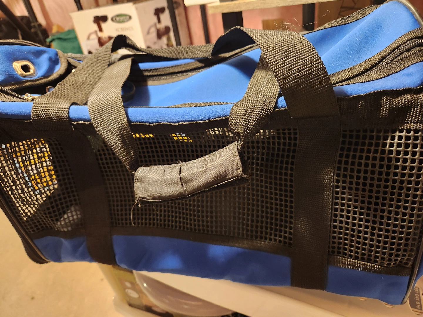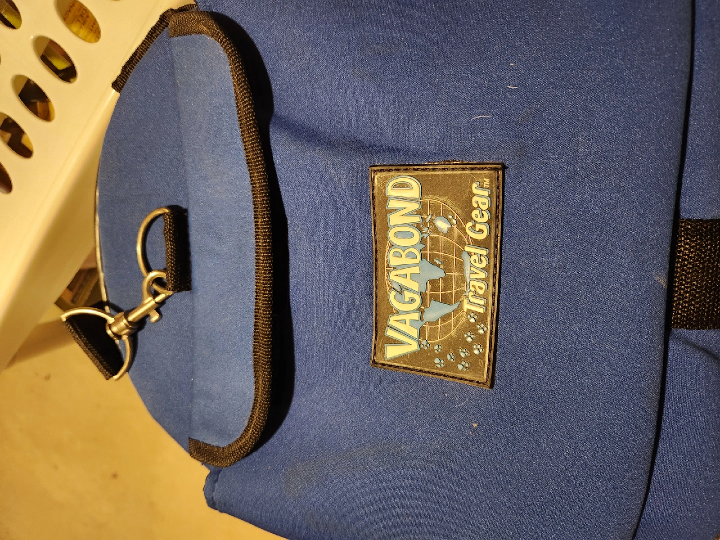 Selling a gently used pet carrier from Vagabond Travel Gear! It's in good condition and perfect for taking your furry friend on trips or to the vet. The carrier is blue and black with mesh sides for ventilation